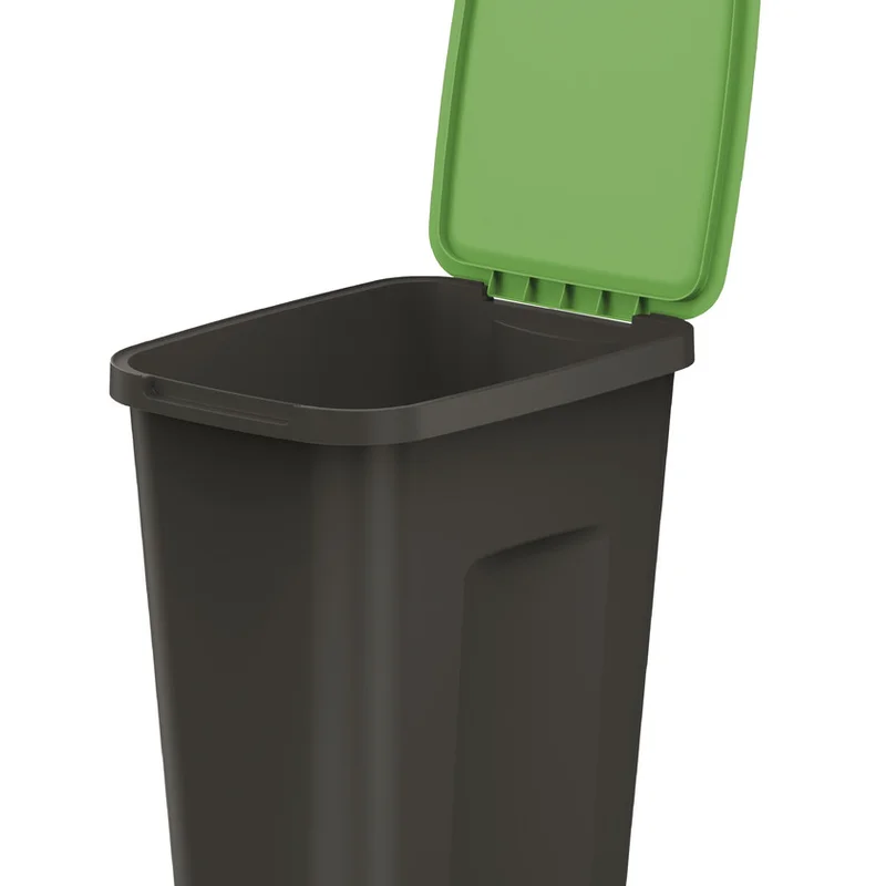 Контейнери оснащені пласкими контрастними кришками, що інтегровані з корпусом та фіксуються у вертикальному положенні з можливістю залишатися постійно відкритими. Поверхня баків стійка до спиртів, жирів та масел. Синій, зелений та жовтий кольори кришок слугують своєрідними маркерами, що додає зручності при сортуванні сміття, розділяючи відходи на фракції — для паперу, скла та пластику, наприклад. Завдяки лаконічній прямокутній формі та кольору, вироби вдало впишуться за призначенням у будь-який простір. Гладка поверхня пластику дозволяє легке миття баків COMPACTA Q Plus.