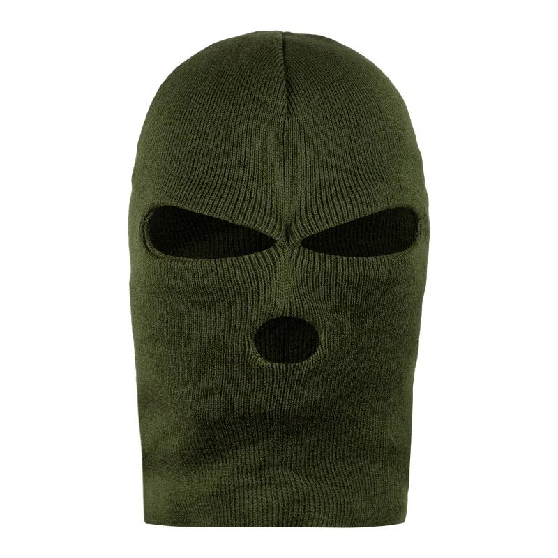 Балаклава з трьома отвором. Захищає лице від вітру, піску, морозу. Виготовлена з акрилової пряжі, приємна на дотик. Матеріал еластичний, швидко розтягується та стягується.