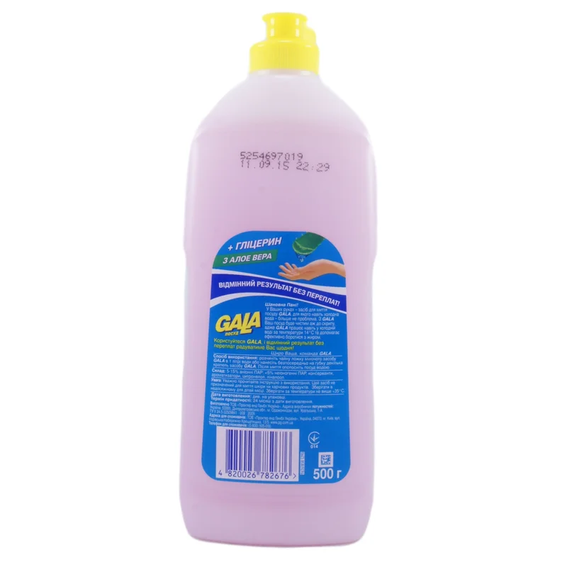 Gala – бальзам для мытья посуды с глицерином и алое вера для защиты ваших рук, обладает приятным ароматом. Может также использоваться для мытья стеклянных, пластиковых, металлических, керамических и деревянных поверхностей.