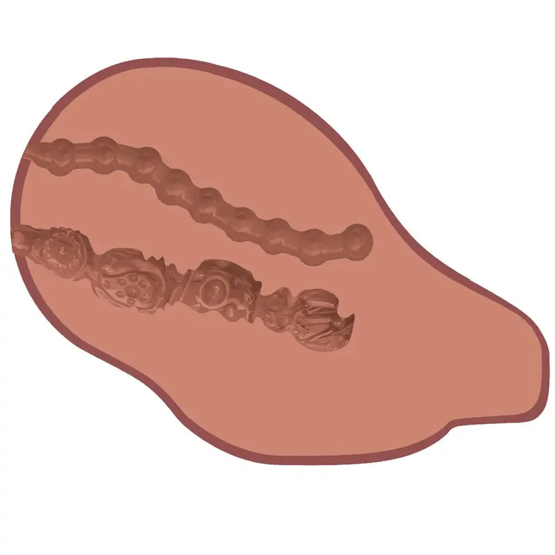 Тунелі з активним рельєфом не перетинаються та створюють насичені відчуття. Реберця та різноманітні форми забезпечать натуралістичні почуття. Додаткову насолоду можна відчути за допомогою вібрації. В упаковці Ви також знайдете 2 віброяйця на пульті керування, які вставляються всередину виробу. Мультишвидкісна вібрація регулюється плавним поворотом коліщатка.