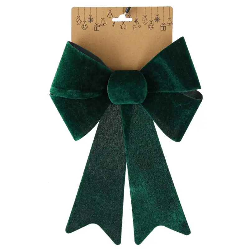 Великий велюровий бант Chomik у насиченому зеленому кольорі — це стильне та благородне рішення для створення святкової атмосфери в домі, офісі чи на відкритому просторі. Виріб має розмір 23×38 см і виготовлений із приємного на дотик велюру з м’яким матовим блиском, який змінюється залежно від кута освітлення. Така текстура надає декору глибини та об’єму. Проволочне кріплення дозволяє швидко та надійно закріпити бант у потрібному місці, не пошкоджуючи поверхні.Особливості Велюрова тканина з ефектом зміни відтінку при освітленні створює вишуканий візуальний ефект і підкреслює святкову естетику. Завдяки великим розмірам бант чудово підходить як основний акцент у декорі великих поверхонь або ялинок. Гнучке кріплення на проволоці забезпечує легкість монтажу та стійке фіксування. Упакований у поліетиленовий пакет, що захищає виріб під час транспортування і полегшує зберігання.Варіанти використання Для оздоблення ялинки, арок, дверей або вікон у класичному новорічному стилі. Як центральний декоративний елемент у фотозоні або святковому інтер’єрі. У складі оформлення фасадів магазинів, ресторанів, або святкових заходів на відкритому повітрі. У поєднанні з червоними, золотистими чи дерев’яними елементами для створення традиційної новорічної палітри.*Реальний колір товару може кілька відрізнятися від зразків, представлених на сайті, в залежності від технічних налаштувань Вашого екрану, а також, враховуючи особливості матеріалу, відтінок товару може змінюватися в залежності від освітлення.
