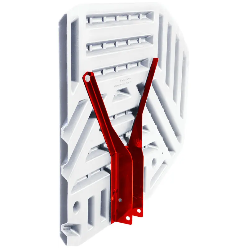 - Вертикальна конструкція з регульованою висотою, зі сталевої телескопічної труби Ø42 мм і армуючих кріплень, покрита порошковою фарбою червоного кольору.
