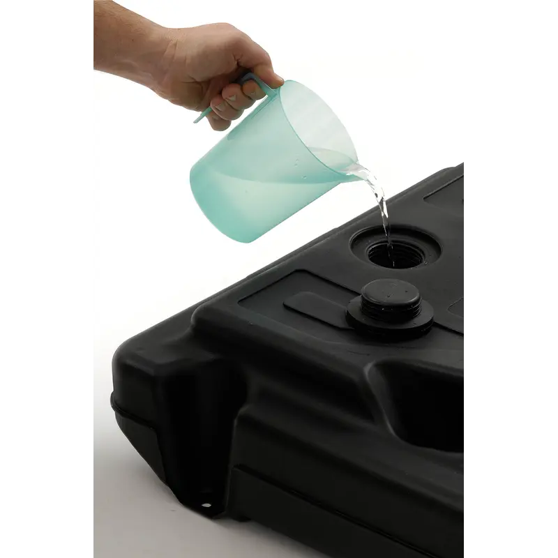 - Основа з чорного формованого поліетилену, оснащена колесами спереду, її можна наповнити водою або піском для забезпечення стійкості під час гри.