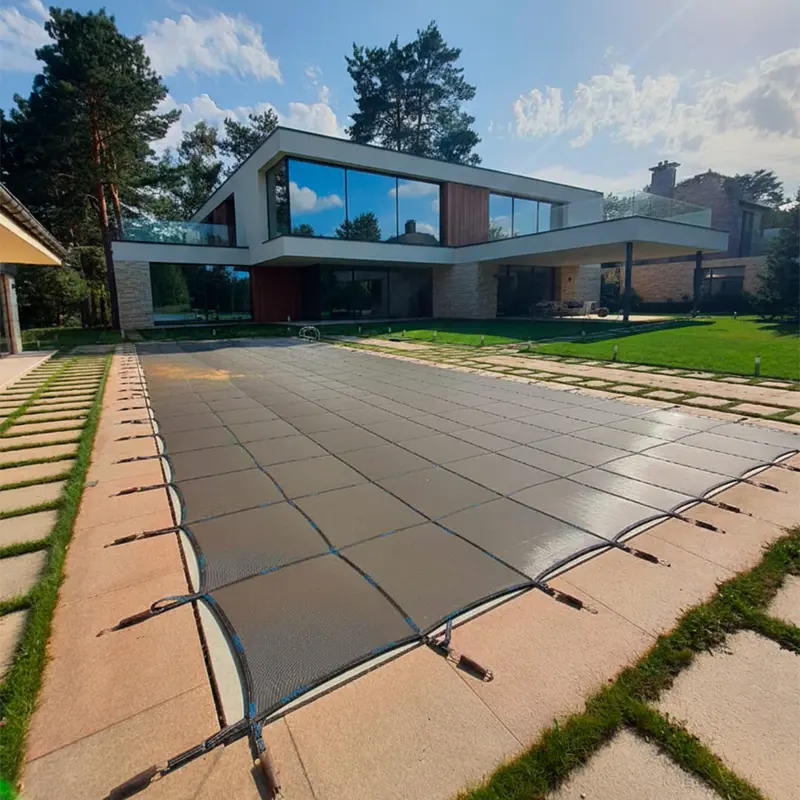 Батутне накриття для басейну Aquaviva Graphite - це професійне всесезонне накриття для басейнів будь-яких форм і розмірів. Забезпечує 100% безпеку для дітей та домашніх тварин. Безкаркасне батутне накриття Aquaviva виконано з екструдованої поліпропіленової сітки з високотехнологічним плетінням, що забезпечує високу міцність, водопроникність, захист від забруднювачів і УФ-випромінювання. Матеріал має підвищену міцність і стійкість до хімії для басейну. Зручність та безпека при ходьбі босоніж після монтажу: анкерні кріплення фіксуються в положенні врівень з підлогою. Ціна вказана за 1 м².