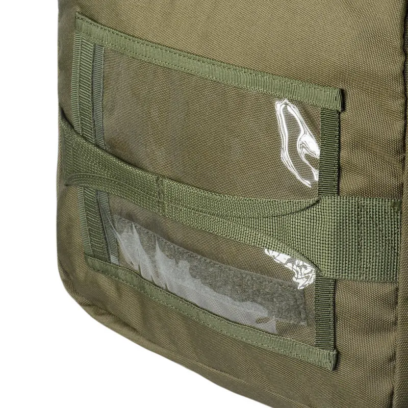 Дана модель застібається на блискавку, прикриту клапаном на велкро липучці, що надійно захищає вміст від забруднень. Для максимальної зручності та рівномірного розподілу навантаження виробник передбачив широкі плечові лямки, завдяки яким баул можна носити як рюкзак на спині. Також є спеціальні ручки для транспортування баула в руках. Збоку розташований прозорий відсік з двома кишенями, в які можна розмістити знаки розрізнення або інші дрібні речі, що повинні бути у швидкому доступі. Додаткові бокові ручки дозволяють зручно переносити баул у вертикальному положенні.