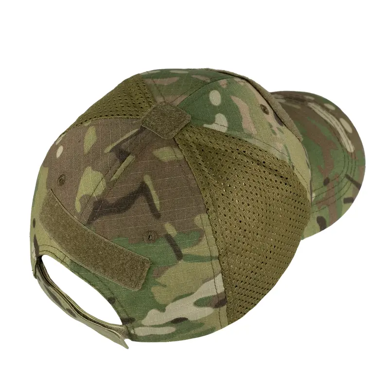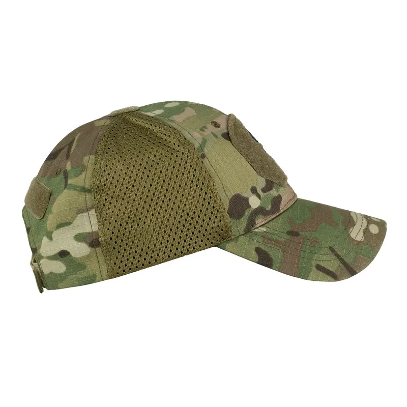 бейсболка из крепкого материала Рипстоп. На боках есть вставки из сетки, которая улучшает циркуляцию воздуха. Бейсболка имеет липучки для знаков различия и нашивок: спереди, сверху и сзади.