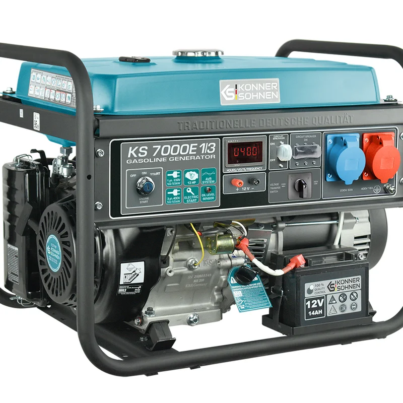 Двигуни Könner & Söhnen вирізняються легким стартом та пониженою вібрацією. Лінійка бензинових генераторів KS 7000 оснащена надійним 1-циліндровим двигуном потужністю 13 к.с.