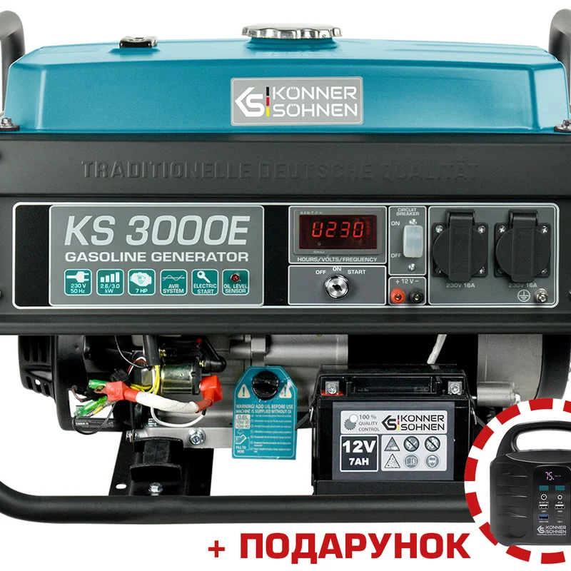 Двигуни Könner & Söhnen вирізняються легким стартом та пониженою вібрацією. Лінійка бензинових генераторів KS 3000 оснащена надійним 1-циліндровим двигуном потужністю 7 к.с.