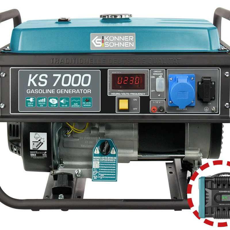 Двигуни Könner & Söhnen вирізняються легким стартом та пониженою вібрацією. Лінійка бензинових генераторів KS 7000 оснащена надійним 1-циліндровим двигуном потужністю 13 к.с.