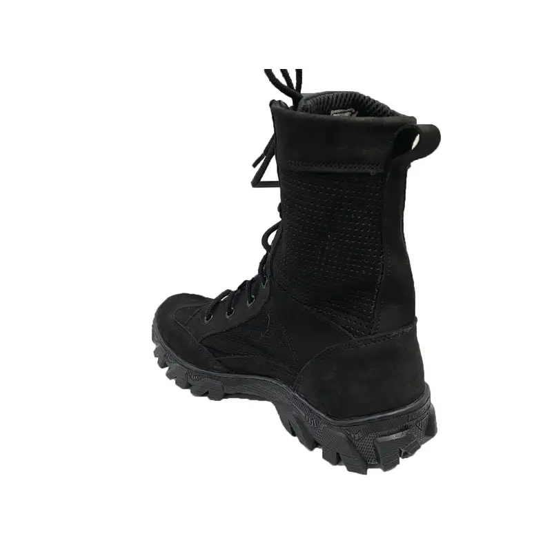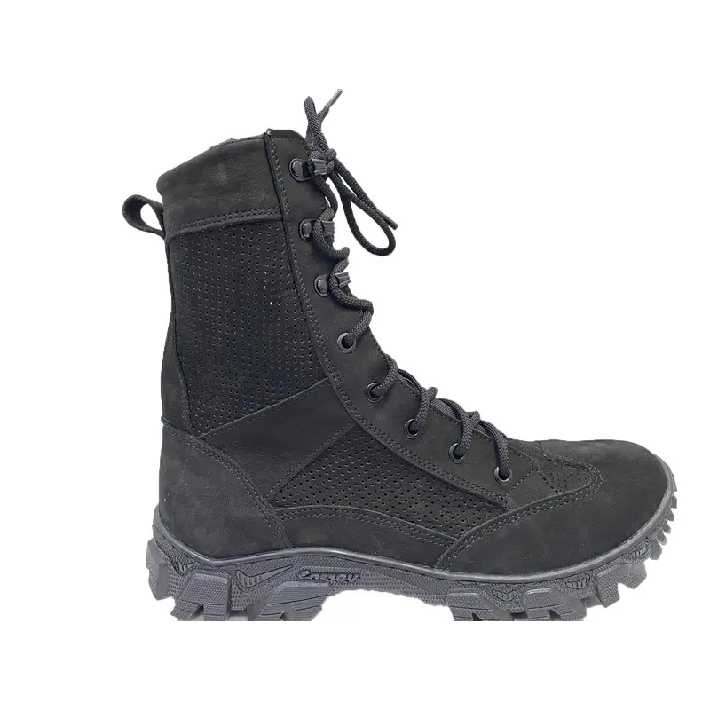 Берцы летние перфорированные черные Pancer — это отличное решение для тех, кто ищет качественную и удобную обувь для активных outdoor-мероприятий, служебных задач или повседневного использования. Эти берцы обеспечивают максимальный комфорт и защиту в летний период благодаря своей конструкции и используемым материалам. Основные характеристики: Материалы: Изготовлены из высококачественного дышащего материала, который обеспечивает отличную вентиляцию и минимизирует потоотделение, что особенно важно в жаркие дни. Перфорированный дизайн: Перфорация в верхней части берцов способствует лучшему воздухообмену, позволяя вашим ногам оставаться свежими и сухими даже при длительном ношении. Комфорт и поддержка: Мягкая анатомическая стелька и специальная подошва обеспечивают хорошую амортизацию и поддержку, что делает эти берцы идеальными для длительных прогулок. Устойчивость и сцепление: Подошва из резины с рифленым протектором обеспечивает надежное сцепление с различными поверхностями, что делает их безопасными для использования на любых типах местности. Цвет черный: Элегантный и универсальный черный цвет подходит для различных ситуаций, включая профессиональную среду, а также охранные и тактические задачи. Берцы летние перфорированные черные Pancer — это надежный выбор для тех, кто ценит качество, комфорт и стиль. Они идеально подойдут как для военных, так и для любителей активного отдыха, обеспечивая вам уверенность и удобство в каждом шаге