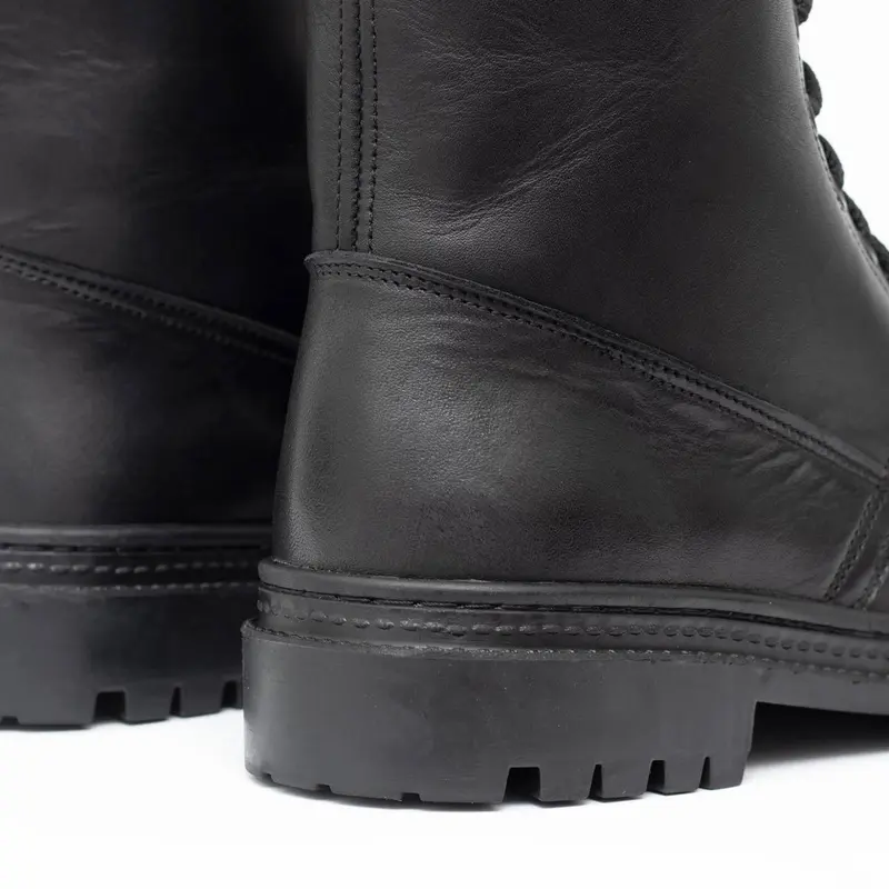Берцы Скорпион Военные берцы Скорпион станут отличным выбором для желающих купить берцы. Скорпион – это современная модель армейской обуви, рассчитанная на жесткие условия использования, повышенные нагрузки и длительное время эксплуатации. Рекомендуем купить армейские берцы Скорпион тем, кто имеет желание приобрести берцы, цена которых не вводит в ступор, а качество остается на высоте. Берцы Скорпион купить в интернет-магазине PANCER PROTECTION» стоит также из-за того, что они представляют собой нашу собственную линию тактической обуви. Разрабатывалась модель в соответствии пожеланиям бойцов, которые предпочитают видеть в обуви: удобный фасон; качественную фурнитуру; потоотводящую внутреннюю часть; классическую или камуфляжную расцветку. Помимо этого, стоит отметить, что эти берцы: 1. Адаптированы под стопу. Очень удобный ботинок хорошо повторяет форму ноги и позволяет носить эту обувь длительное время не уставая. 2. Сделаны из кожи. Это придает берцам хорошие износоустойчивые качества. 3. Имеют полиуретановую подошву. Хороша на любые типы местности, не скользит, хорошо гнется, крепкая структура. 4. Люверсы сделаны в виде отверстий. Хорошая фурнитура не отваливается и не ржавеет, позволяет надежно зашнуровать берцы. 5. Классический черный цвет. Подходит под любой камуфляж, очень практичен. Берцы Скорпион, цена которых невысока, не оставят равнодушными любителей хорошей тактической обуви: в них можно идти на охоту, в турпоход, на шашлыки или простую прогулку по городу, не говоря уже о применении на армейском полигоне. Купить берцы в магазине-шоуруме военторга PANCER PROTECTION» может любой гость и житель столицы. А если вам необходимо купить берцы Скорпион в Украине, будучи в другом городе – достаточно сделать заказ и получить его почтой. Отправки происходят каждый рабочий день. Современная армейская обувь — Берцы Скорпион Pancer Легкая и прочная тактическая обувь, предназначенная для длительного ношения и повышенных нагрузок. Отлично подойдет для полицейских и сотрудников служб безопасности, а также как универсальная городская и обувь для бездорожья. Характерные особенности: берцы изготовлены из натуральной кожи, благодаря чему обеспечивается как хорошая вентиляция, так и высокая прочность; эргономичный дизайн обуви гарантирует хорошую посадку и высокий комфорт использования; берцы тактические полностью водонепроницаемые и одновременно дышащие; классический черный цвет делает обувь универсальной; подошва с глубоким протектором обладает противоскользящими свойствами. Протектор гарантирует хорошее сцепление с различными типами поверхностей, например, с булыжниками, асфальтом, бетоном, гравием или камнями. Подошва изготовлена из высококачественного полиуретана, который обеспечивает достаточную эластичность, стойкость к истиранию, а также противоскользящие свойства. Не вступает в реакцию с маслами, смазками или разбавленными кислотами и щелочами. Материал и форма протектора сочетают в себе хорошее сцепление на скользких поверхностях с гибкостью подошвы для динамичного бега, включая отскок от острых краев и скрытное лазание. Каблук обеспечивает устойчивость на лестницах и ступенях.