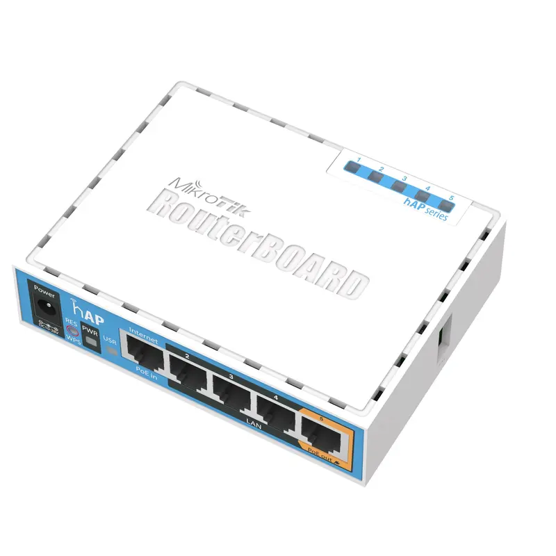 MikroTik hAP (RB951Ui-2ND) — це компактний бездротовий маршрутизатор, який забезпечить якісним Wi-Fi покриттям квартиру чи невеликий офіс. Перевірена роками якість маршрутизаторів MikroTik виростила мільйони прихильників бренду, яким подобається стабільність роботи, широкий функціонал та лаконічний дизайн пристроїв. MikroTik hAP оснащений вбудованими антенами і готовий до роботи прямо з коробки. -5 портів Ethernet -Wi-Fi на частоті 2,4 ГГц (підтримка стандарту 802.11n) -Підтримка PoE (out) на останньому порті (порт №5) та можливість живлення по PoE (in) через перший порт -Підтримка USB 3G/4G модемів для резервного каналу зв’язку -Підтримка WPS кнопкою Безпека даних Фірмова операційна система RouterOS захищатиме ваші дані від атак зловмисників. Оновлення RouterOS відбуваються безкоштовно, але не автоматично. Для оновлення потрібно увійти до додатку і оновити прошивку. Без «стирчащих» антен Дві вбудовані антени забезпечать якісним Wi-Fi покриттям квартиру чи невеликий офіс. Більше жодних дратуючих зовнішніх антен, які складно вписати у дизайн вашого інтер’єру. Також можна не переживати, що антени зламають діти чи погризуть домашні улюбленці. Підтримка WPS Маршрутизатор підтримує технологію WPS, що запускається за допомогою кнопки на пристрої. За допомогою WPS можна підключати пристрої до Wi-Fi роутера без необхідності вводити пароль від бездротової мережі. Зручне кріплення Роутер можна закріпити на стіну за допомогою кріплень, що входять у комплектацію 3 режими роботи на вибір -Роутер або точка доступу для роздачі інтернету по Wi-Fi -Міст (або клієнт) для отримання існуючого сигналу Wi-Fi та для подальшої передачі сигналу по дроту -Репітер (повторювач сигналу) для розширення бездротового покриття. Додаток MikroTik Home Додаток MikroTik Home дозволяє зручно керувати роутером і підключеними до мережі пристроями. Що можна зробити у додатку? -налаштувати Wi-Fi -налаштувати Інтернет -керувати підключенням домашніх пристроїв -обмежити доступ дітей до мережі -налаштувати переадресацію портів Широкий функціонал для досвідчених користувачів Використовуючи веб-інтерфейс, CAPsMAN або мобільний додаток MikroTik Pro можна отримати доступ до повної панелі налаштувань. Комплектація: MikroTik hAP, блок живлення.