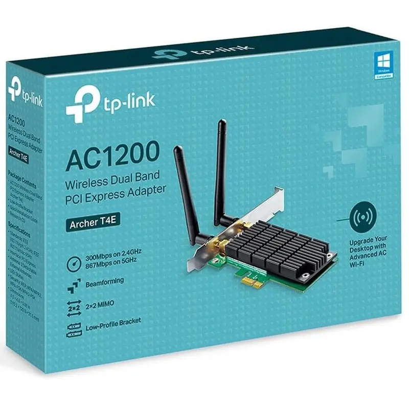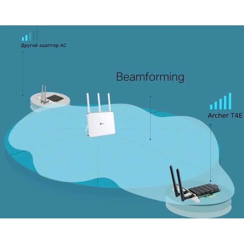 Archer T4E підтримує наступне покоління стандарту Wi-Fi 802.11ac, що забезпечує в 3 рази швидше з'єднання в порівнянні зі стандартом N. Використовуйте діапазон 2.4 ГГц для надсилання e-mail і читання веб-сторінок, зберігаючи діапазон 5 ГГц для таких вимогливих завдань, як перегляд HD-відео, онлайн-ігри тощо. Найкраще приймання з Beamforming Технологія Beamforming фокусує сигнал Wi-Fi у напрямку під'єднаних пристроїв, забезпечуючи надійне з'єднання та збільшене покриття мережі. Радіатор для більшої стабільності Радіатор дає змогу розсіювати тепло, що генерується адаптером, що збільшує його продуктивність і термін експлуатації. Зовнішні антени для спрямованого сигналу Для стабільнішого сигналу та кращого покриття пристрій має дві зовнішні антени.