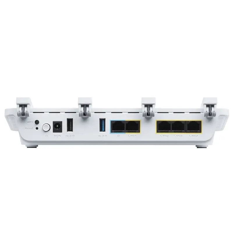 Дводіапазонний бізнес-маршрутизатор ExpertWiFi EBR63 класу AX3000: стандарт Wi-Fi 6 (802.11ax), режими точки доступу, маршрутизатора, комутатора та шлюзу безпеки, підтримка до 5 SSID, VLAN, SDN, персоналізований гостьовий портал, міжмережеві VPN, вбудований кронштейн-підставка, інформаційний захист корпоративного класу, зручний застосунок для адміністрування Особливості: Безпека та можливість сегментування мережі – просте налаштування бізнес-мережі Wi-Fi за допомогою функції Self-Defined Network (SDN), а також підвищена безпека завдяки підтримці VLAN та до п’яти SSID для розділення пристроїв і визначення пріоритетів у різних бізнес-сценаріях Персоналізований гостьовий портал – гостьові портали можуть бути адаптовані до потреб бізнесу за допомогою вибору типу порталу, брендингу та візуальних шаблонів, які відповідають певному діловому стилю Резервний WAN-канал – для встановлення резервного інтернет-з’єднання через смартфон можна скористатися USB-портом Інформаційний захист корпоративного класу та технологія VPN – функція Safe Browsing, підтримка VPN для захищеного підключення до загальнодоступних мереж Wi-Fi, безкоштовний захист комерційного рівня ASUS AiProtection Pro Можливість встановлення в будь-якому просторі: EBR63 постачається з вбудованим кронштейном і має отвори для настінного кріплення, щоб розмістити пристрій практично в будь-якому місці для економії місця та більшої гнучкості