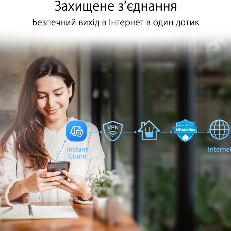 ASUS ZenWiFi – Ідеальна mesh-система для будівель із товстими стінами Mesh-система ZenWiFi AX Hybrid складається з пари Wi-Fi маршрутизаторів ASUS класу AX1800, у кожний з яких убудовано адаптер HomePlug AV2 для передачі даних через дроти наявної електромережі. Це рішення забезпечує покриття швидкісною, надійною й захищеною мережею Wi-Fi всього простору будинку. Система ASUS ZenWiFi AX Hybrid ідеально підходить для сучасного високотехнологічного дому завдяки підтримці «розумних» сервісів, зокрема Alexa. Ідеальне рішення для будівель із товстими стінами ZenWiFi AX Hybrid поєднує в собі технології Wi-Fi і Powerline для покриття швидкісною мережею будівель із товстими або металевими стінами, які спричиняють проблеми при використанні в ролі магістрального каналу (backhaul) з’єднання Wi-Fi. Це рішення дає змогу застосовувати для з’єднання маршрутизаторів між собою дроти наявної електромережі, тож домашні пристрої зможуть обмінюватися даними в бездротовій мережі на повній швидкості Wi-Fi 6 класу AX1800. Стандарт HomePlug AV2 MIMO підтримує майже вдвічі вищу швикість, ніж попередній. Функція Instant Guard – безпека в загальнодоступній мережі Wi-Fi Активуйте функцію ASUS Instant Guard, щоб зробити підключення до будь-якої загальнодоступної мережі Wi-Fi VPN захищеними! Вона допоможе захистити такі особисті дані, як відомості про кредитні картки, робочу інформацію, електронні листи тощо. Гнучке іменування Унікальною особливістю ZenWiFi є гнучкі можливості з іменування бездротової мережі: ви можете використовувати як одне ім'я для всієї мережі, так і окремі імена для кожного частотного діапазону. Швидке і просте налаштування Налаштувати систему можна у 3 кроки в додатку ASUS Router.