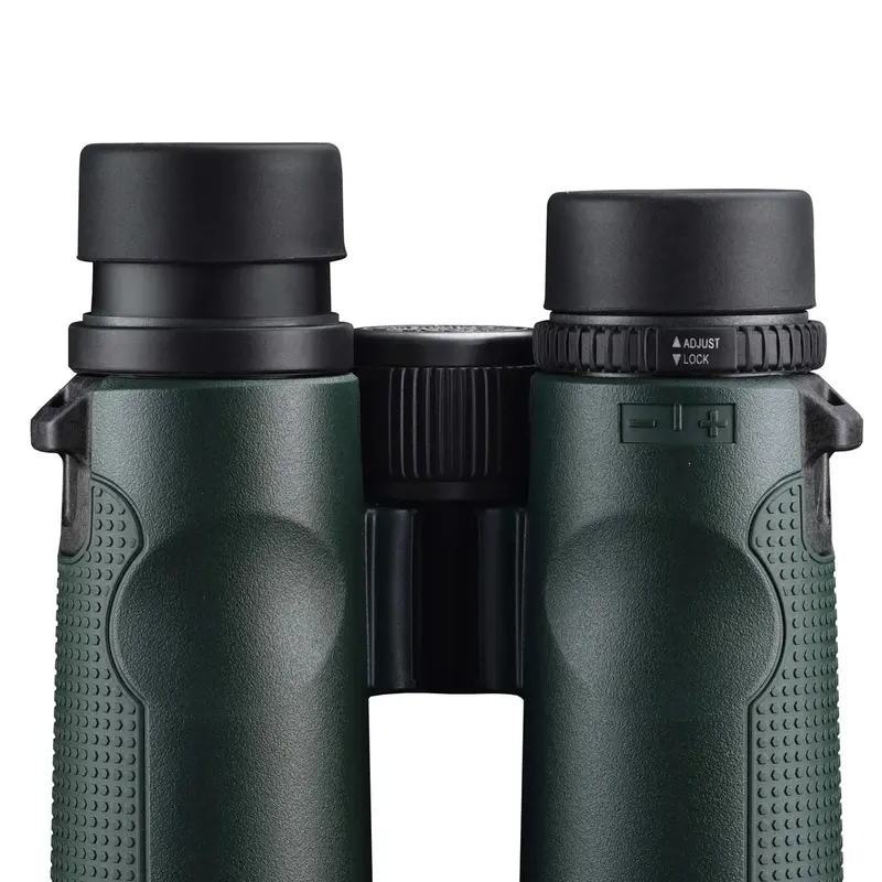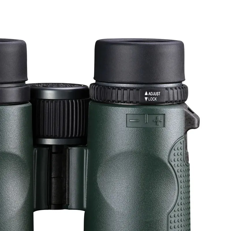Right locking diopter. Кожен користувач зазвичай лише один раз використовує механізм діоптрійної корекції при налаштуванні бінокля під особливості свого зору. Проте кожного разу, висуваючи оправи окулярів, існує ймовірність зміщення налаштувань і втрати різкості зображення. Замок-фіксатор механізму корекції діоптрії на правому окулярі запобігає випадкове зміщення налаштувань. Таким чином, при черговому використанні, бінокль буде вимагати мінімум налаштувань, і Ви не втратите жодної важливої деталі при спостереженнях.