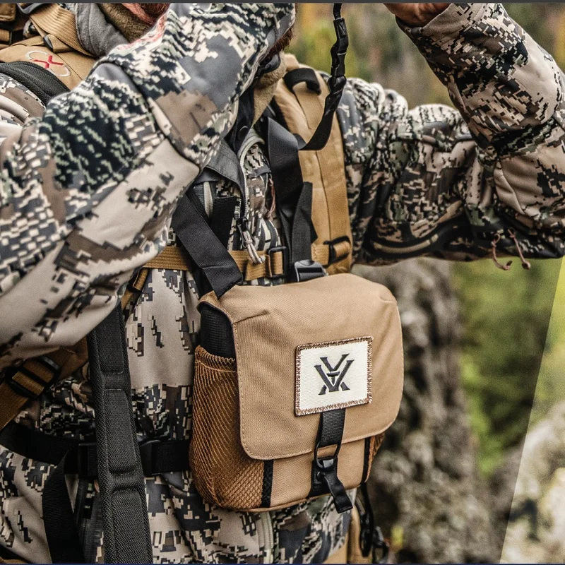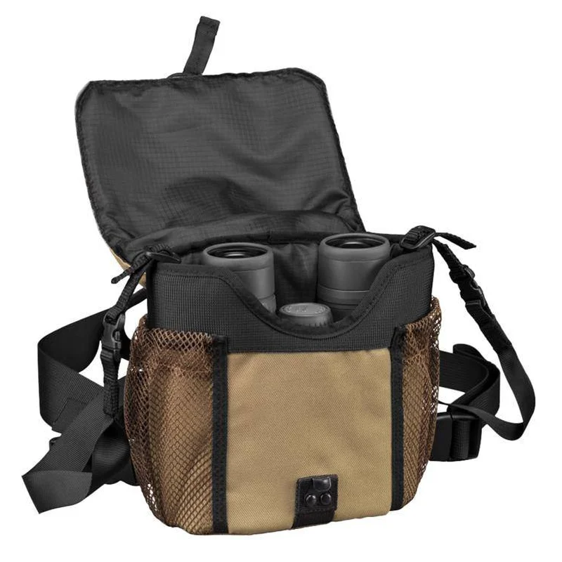 GlassPak™ - Сумка для біноклів із системою наплечних ременів, досить зручна для транспортування та експлуатації бінокля, будучи на природі, в дорозі або на полюванні. Багатоточкова конструкція ременів сумки знімає навантаження з шиї, переносячи її на плечі, дозволяючи таким чином комфортно носити бінокль тривалий час. Фіксатори також кріпляться до бінокля, запобігаючи випадковому падінню бінокля, а задня кишеня на блискавці вміщує додаткові предмети, наприклад мобільний телефон.
