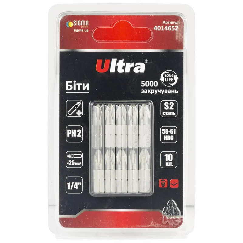 Біти PH2×25мм ¼" 10шт S2 (блістер) ULTRA (4014652)
