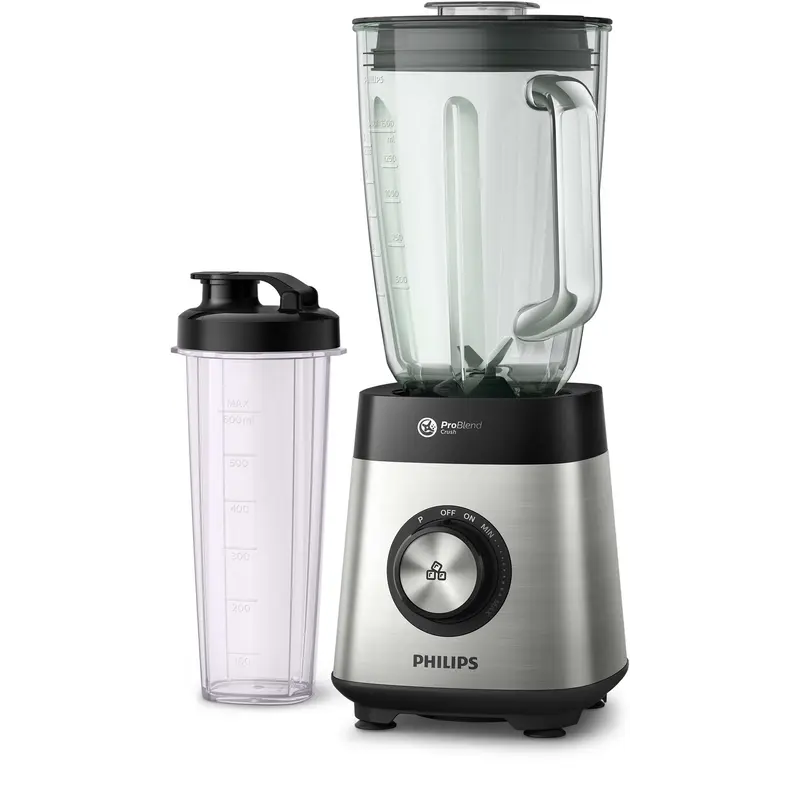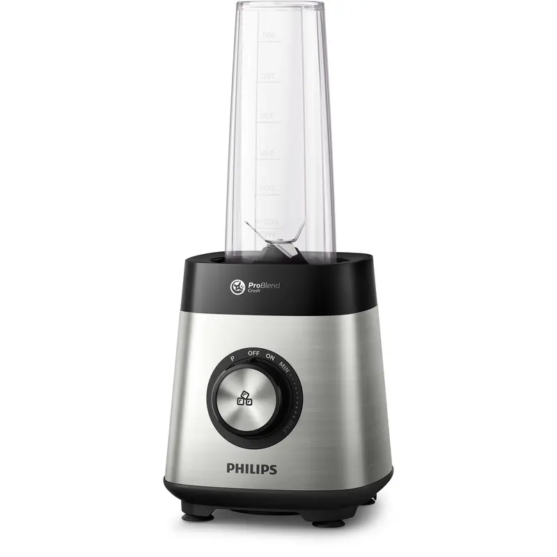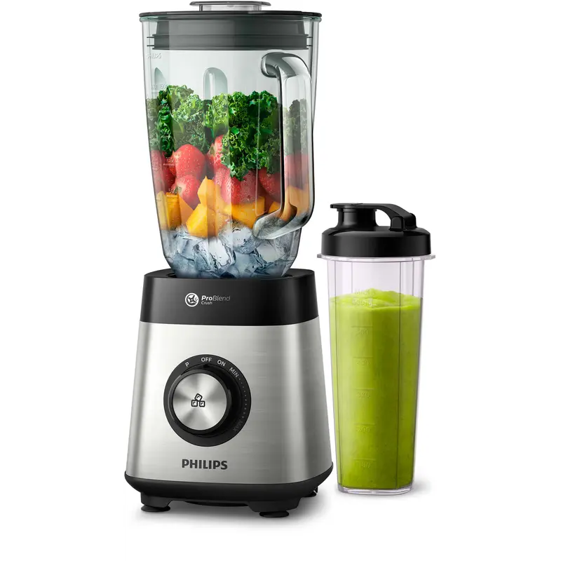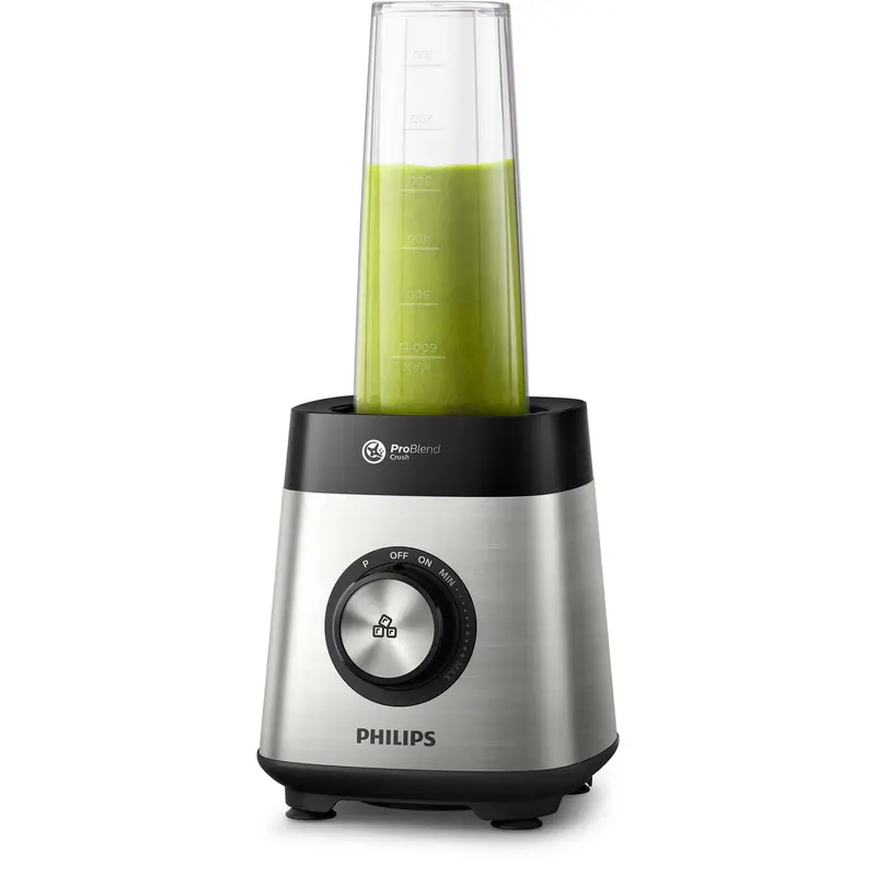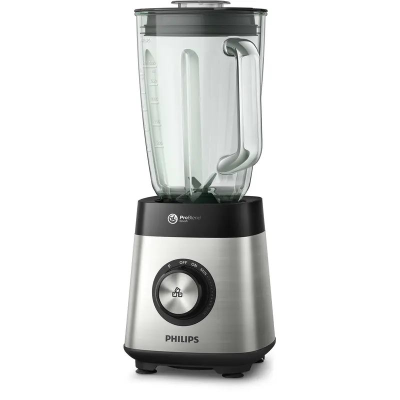 Технологія ProBlend Crush дозволяє перетворювати навіть найтвердіші інгредієнти на смузи удвічі швидше. Наш унікальний 6-кінцевий ніж у поєднанні з енергоефективним мотором 1000 Вт легко подрібнить лід і великі інгредієнти. Потужний і енергоефективний мотор 1000 Вт Потужний і енергоефективний мотор 1000 Вт має ідеальний баланс енергоспоживання і забезпечує ефективне змішування. Створений для максимальної продуктивності з технологією ProBlend Crush. Технологія ProBlend Crush і 6-кінцевий ніж для якісного змішування Технологія ProBlend Crush дозволяє перетворювати навіть найтвердіші інгредієнти на смузи удвічі швидше. Наш унікальний 6-кінцевий ніж у поєднанні з енергоефективним мотором 1000 Вт легко подрібнить лід і великі інгредієнти. Макс. місткість 2 л, робоча місткість глека 1,5 л У великому 2-літровому глеку ви зможете приготувати до 1,5 літрів смачного смузи на усю сім"ю або залишити на потім.