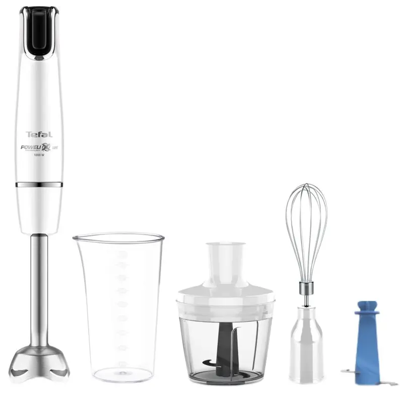 Висока продуктивність поєднується з високою точністю в ручному блендері Tefal InfinyForce. Технологія Powelix Life пропонує високопродуктивні леза з титановим покриттям, забезпечує ідеальні результати та довголіття. Відкрийте ексклюзивні леза Powelix Life Blades, що пропонують неперевершену довговічність та продуктивність, яка триває вдвічі довше та дає на 30% швидший результат. Потужність 1000 Вт забезпечує блискавичні результати у всіх ваших улюблених рецептах, забезпечуючи оптимальне змішування різноманітних інгредієнтів. Особливості Насадка для подрібнення льоду Додайте своїм стравам атмосферу ресторанної якості за допомогою високопродуктивної насадки, яка ніколи не перестає вражати. Вінчик у комплекті Все, що вам потрібно для збивання, завжди у вас під рукою, для приготування виняткових омлетів, яєчних білків, безе і багато чого іншого. Насадка для подрібнення Відкрийте для себе бездоганне подрібнення. Ідеально підходить для овочів, сальси, трав, спецій тощо. Мірний стакан Стакан на 800 мл ідеально підходить для домашніх супів, пюре, песто і багато чого іншого, пропонуючи ідеальну ємність для будь-якого випадку. Легке очищення Знімні частини, які можна мити в посудомийній машині, спрощують очищення, забезпечуючи рівень зручності, що ідеально підходить для повсякденного використання. Ніякого безладу та бризок Ніжка проти бризок забезпечує максимальну зручність у вашій кухні. Легке користування Багатошвидкісний пусковий механізм забезпечує надзвичайну точність на кінчиках ваших пальців, з регульованими елементами керування, що охоплюють будь-яку текстуру чи результат, а також покращену ергономіку ручного блендера. Легше - неможливо.