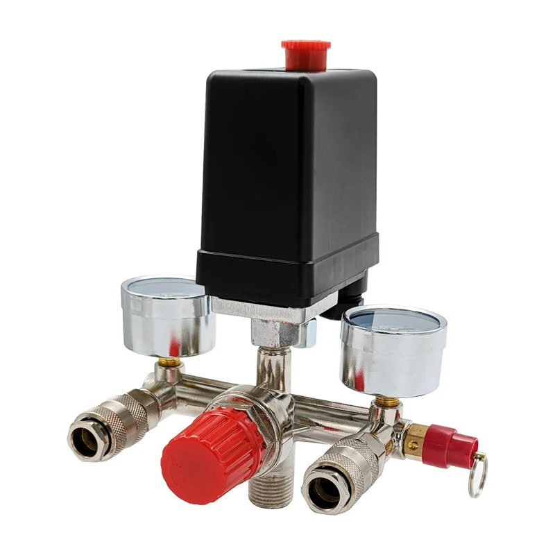 ПризначенняПресостат або реле тиску (блок керування) призначений для контролю тиску в ресивері компресора за заданими параметрами в автоматичному режимі. Використовується для однофазних повітряних поршневих компресорів із напругою 220 В, максимальною потужністю до 3 кВт.