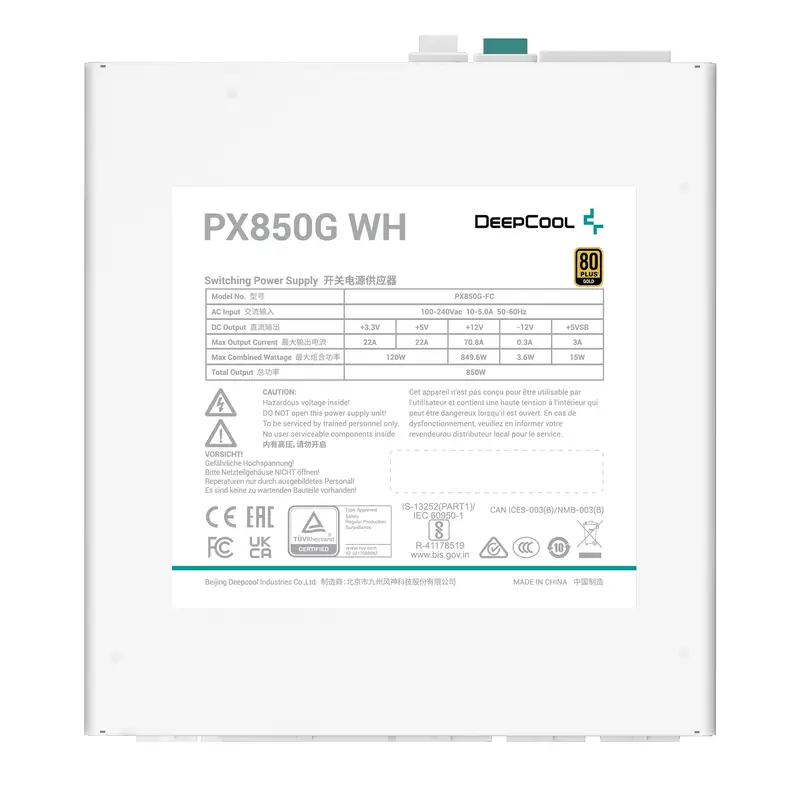 DeepCool PX850G — це новий блок живлення, який відповідає найновішому стандарту ATX 3.0. Завдяки виділеному 12VHPWR, 2 EPS і 3 портам PCI-e PX850G забезпечує стабільне живлення для широкого спектру компонентів.