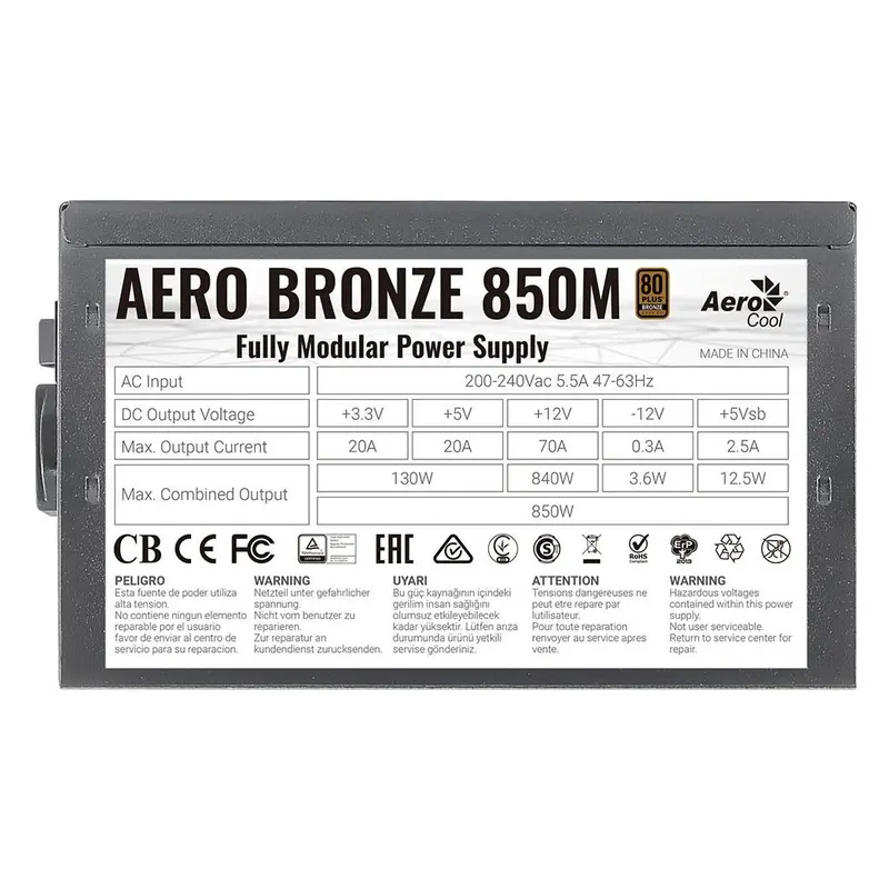 Блок живлення AeroCool Aero Bronze 850M Fully Modular (ACPB-AR85AEC.1M) 850W