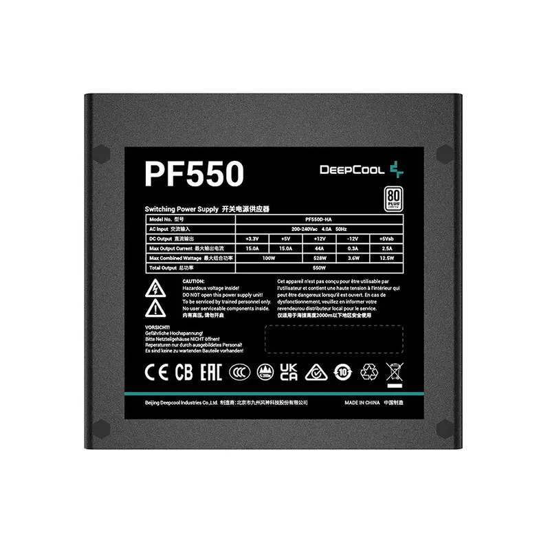 Блок живлення серії DeepCool PF забезпечує безпечне та стабільне живлення з надійною стандартною ефективністю 80 PLUS і доступною ціною.