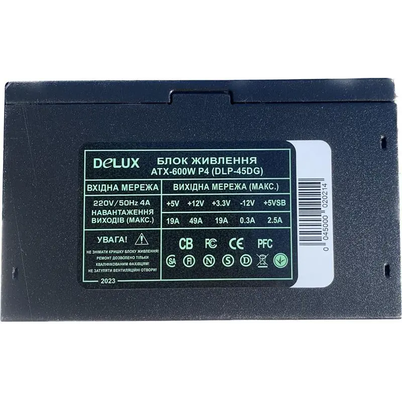 Модель Delux 600W (DLP-45DG) зробить ваш персональний комп’ютер по-справжньому надійним та довговічним. Цей блок живлення відмінно справляється з функціями вторинного джерела живлення для інтегрованих і дискретних графічних адаптерів, а також інших пристроїв, встановлених в ПК. Завдяки активній системі PFC пристрій не перегрівається в ході автоматичного компенсування потужності. У конструкції передбачені роз’єми під лінії резервного підживлення відеоадаптерів. Також є достатня кількість входів для процесора та материнської плати, Peripheral, SATA. Експлуатаційний ресурс є вельми значним. Завдяки роботі вбудованого лопатевого кулера та вентиляційної перфорації забезпечується підтримання температури під корпусом на рівні, необхідному для коректної роботи внутрішніх вузлів блоку живлення. Довжина шлейфу – 550 мм.
