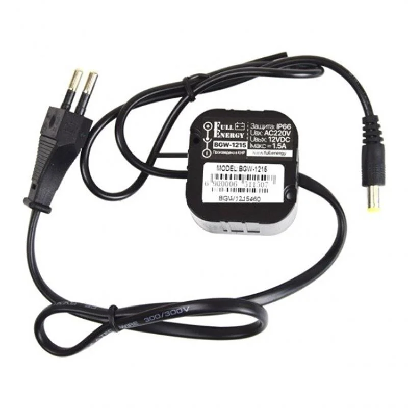 Мініатюрний блок живлення імпульсний, одноканальний, для монтажу в підрозетник. Вихід: +12/1.5А, роз’єм живлення; Вхід: ~ 220В, мережевий шнур з вилкою в розетку. Клас захисту: IP66; Довжина кабелю: 40см (від БЖ до роз’єму) + 40см (від БЖ до вилки); Розміри: 43х40х27мм