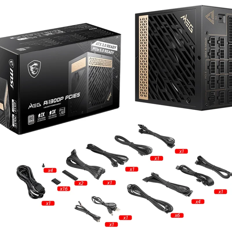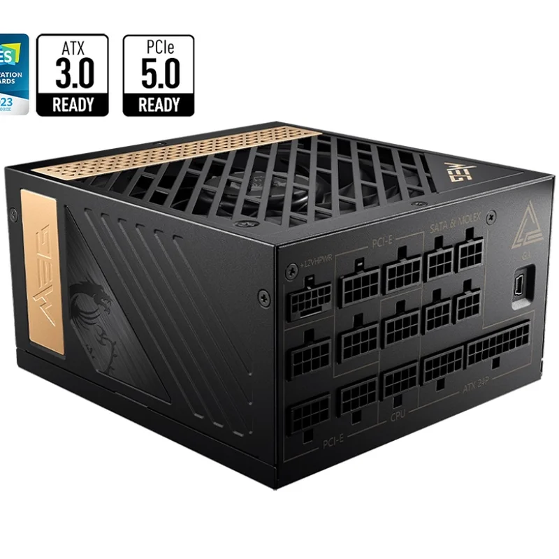 Серія MEG прагне вийти за рамки сучасних ігрових продуктів. Флагманські моделі, розроблені, щоб розширити межі можливого для екстремальних ігрових продуктів. Символом серії MEG, є трикутник, три сторони якого символізують три стовпи основних цінності серії MEG: ексклюзивність, витривалість і розкіш. ПІДТРИМКА ATX 3.0 Він має роз’єм, що сумісний із PCIe 5.0 і Intel PSDG (Керівницство з розробки блоків живлення) ATX 3.0. Цей блок живлення може витримати до 2-кратного короткочасного збільшенння загального живлення та 3-кратного короткочасного збільшеня живлення відеокарти.