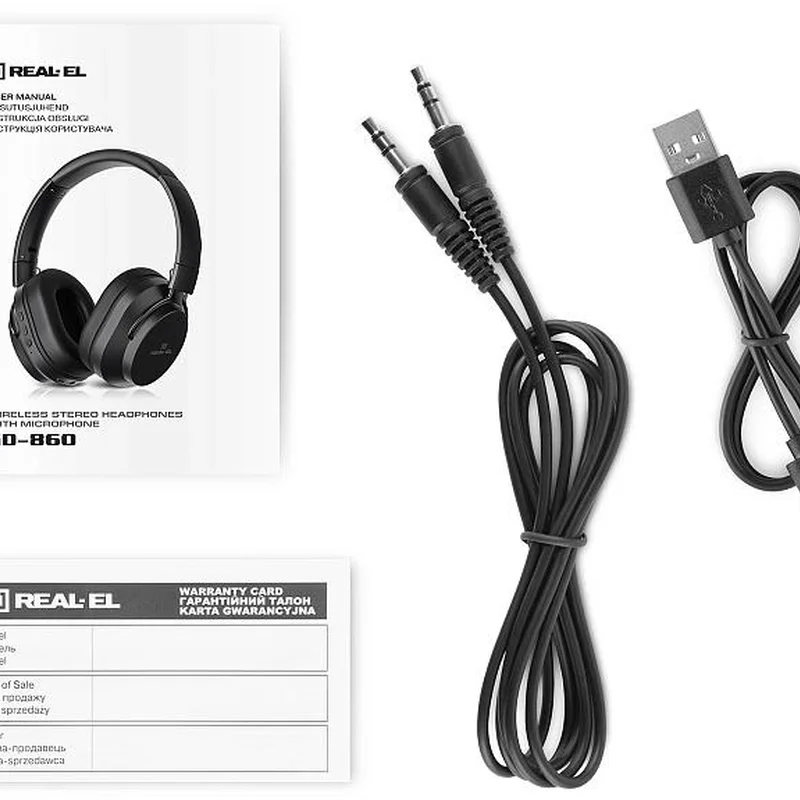 Особливості: Можливість дротового підключення 3,5 мм Управління рівнем гучності та треками з навушників Вбудований мікрофон Управління телефонними дзвінками та голосовим помічником Неодимові капсуля Бездротові стереонавушники з мікрофоном REAL-EL GD-860 відрізняє компактний розмір (завдяки міцній конструкції, що складається), зручна посадка з регулятором розміру і невелика вага. Дана модель сумісна з різними пристроями за протоколом Bluetooth 5.0 (також підтримує попередні версії). Вбудований акумулятор дозволяє працювати автономно до 20 годин, а якщо вам потрібно продовжити роботу - в комплект входять кабель живлення USB і кабель для дротового підключення. Стереонавушники REAL-EL GD-860 забезпечують високоякісну передачу звуку, а за допомогою зручних кнопок, розташованих прямо на корпусі, ви зможете легко керувати не тільки рівнями гучності і треками, а й телефонними дзвінками.