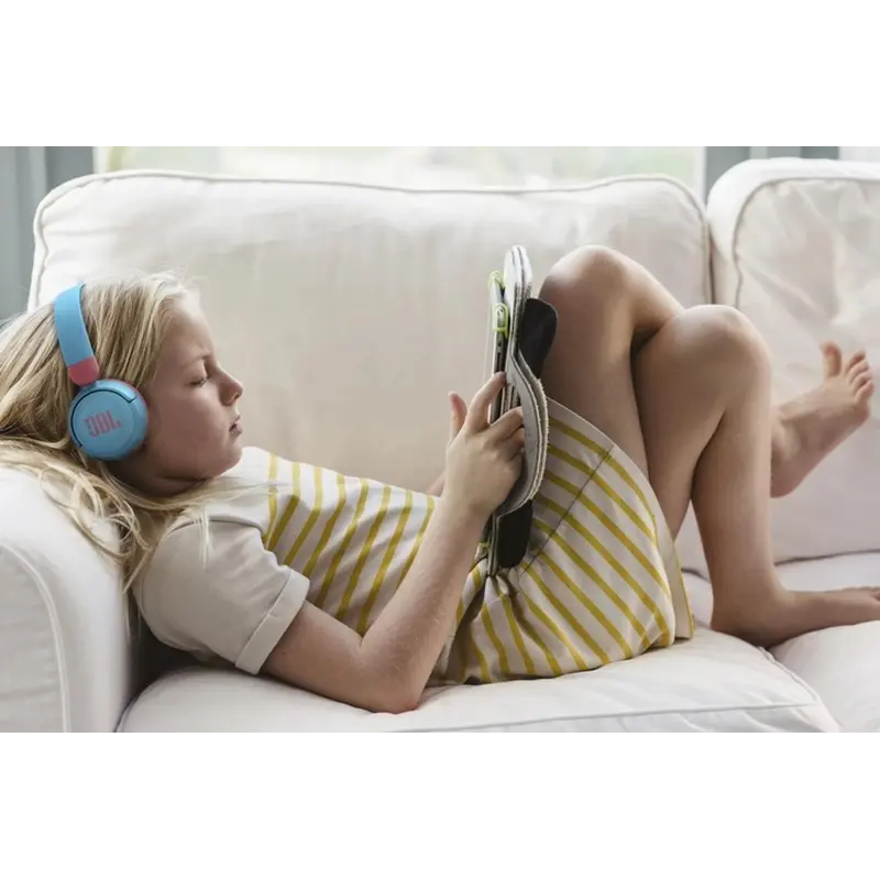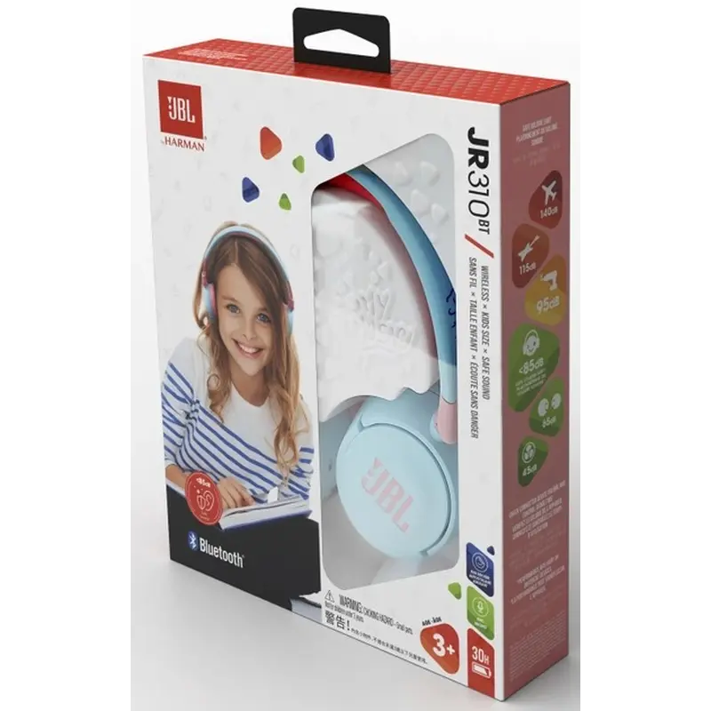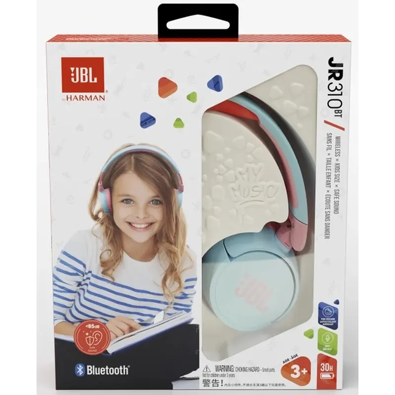 Навушники JBL JR 310BT розроблені спеціально для дітей. Вони відрізняються від «дорослих» моделей не лише яскравим забарвленням, а й особливою системою управління, що обмежує гучність на рівні 90 дБ. Це дозволяє захистити вуха дитини від пошкоджень, зберігши гостроту слуху. Повна свобода дій Юні меломани зможуть підключити пристрій до смартфону через Bluetooth, тому їм не доведеться плутатися у проводах. Місткості акумулятора вистачить на 30 годин безперервного прослуховування музики. При цьому всього 10 хвилин підзарядки буде достатньо години відтворення. Виняткова зручність Як амбушури, так і оголов'я навушників оббиті якісними матеріалами, що захищають ніжну шкіру від подразнення та алергічних реакцій. Проста система управління дозволяє дітям молодшого віку вмикати пристрій без допомоги дорослих. JBL Safe Sound Легендарне звучання JBL з технологією контролю гучності, яка просто не зможе перевищити 90 дБ, завдяки чому навушники підійдуть навіть найменшим музичним фанатам. Підтримка Bluetooth Бездротове підключення на відстані до 15 метрів – жодних дротів. Вбудований мікрофон Ваші діти будуть на зв'язку зі світом за допомогою вбудованого мікрофона. Вони зможуть легко спілкуватися з друзями та сім'єю у вільний час. Або з учителями під час навчання.
