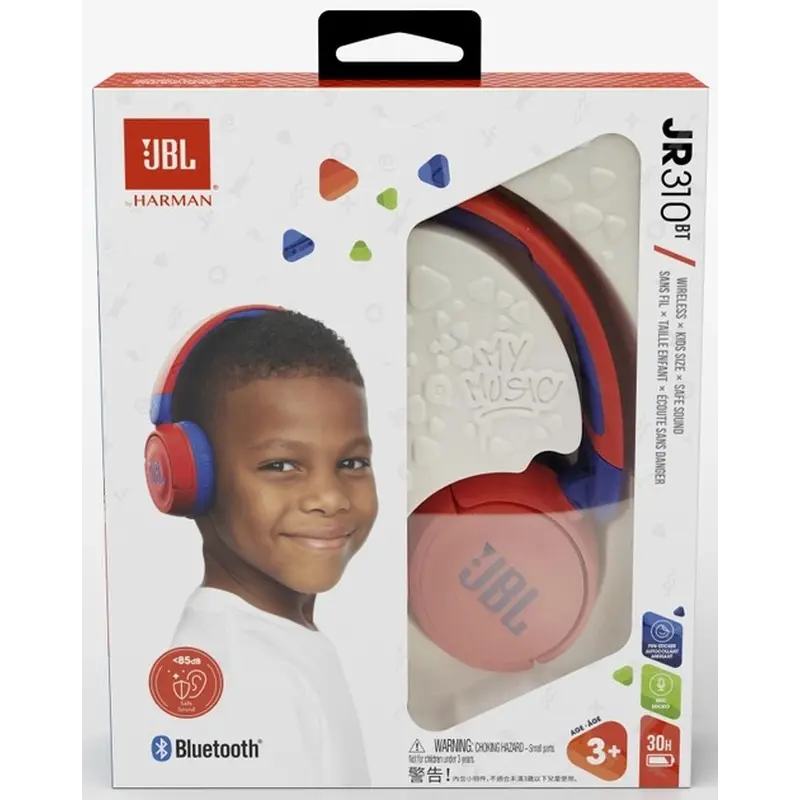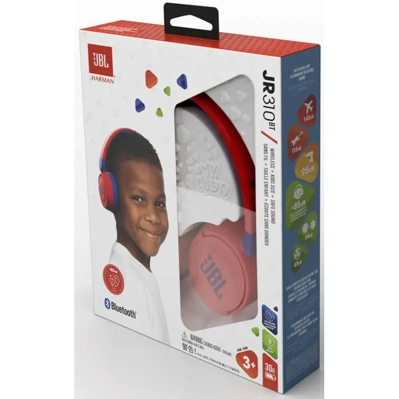 Навушники JBL JR 310BT розроблені спеціально для дітей. Вони відрізняються від «дорослих» моделей не лише яскравим забарвленням, а й особливою системою управління, що обмежує гучність на рівні 90 дБ. Це дозволяє захистити вуха дитини від пошкоджень, зберігши гостроту слуху. Повна свобода дій Юні меломани зможуть підключити пристрій до смартфону через Bluetooth, тому їм не доведеться плутатися у проводах. Місткості акумулятора вистачить на 30 годин безперервного прослуховування музики. При цьому всього 10 хвилин підзарядки буде достатньо години відтворення. Виняткова зручність Як амбушури, так і оголов'я навушників оббиті якісними матеріалами, що захищають ніжну шкіру від подразнення та алергічних реакцій. Проста система управління дозволяє дітям молодшого віку вмикати пристрій без допомоги дорослих. JBL Safe Sound Легендарне звучання JBL з технологією контролю гучності, яка просто не зможе перевищити 90 дБ, завдяки чому навушники підійдуть навіть найменшим музичним фанатам. Підтримка Bluetooth Бездротове підключення на відстані до 15 метрів – жодних дротів. Вбудований мікрофон Ваші діти будуть на зв'язку зі світом за допомогою вбудованого мікрофона. Вони зможуть легко спілкуватися з друзями та сім'єю у вільний час. Або з учителями під час навчання.