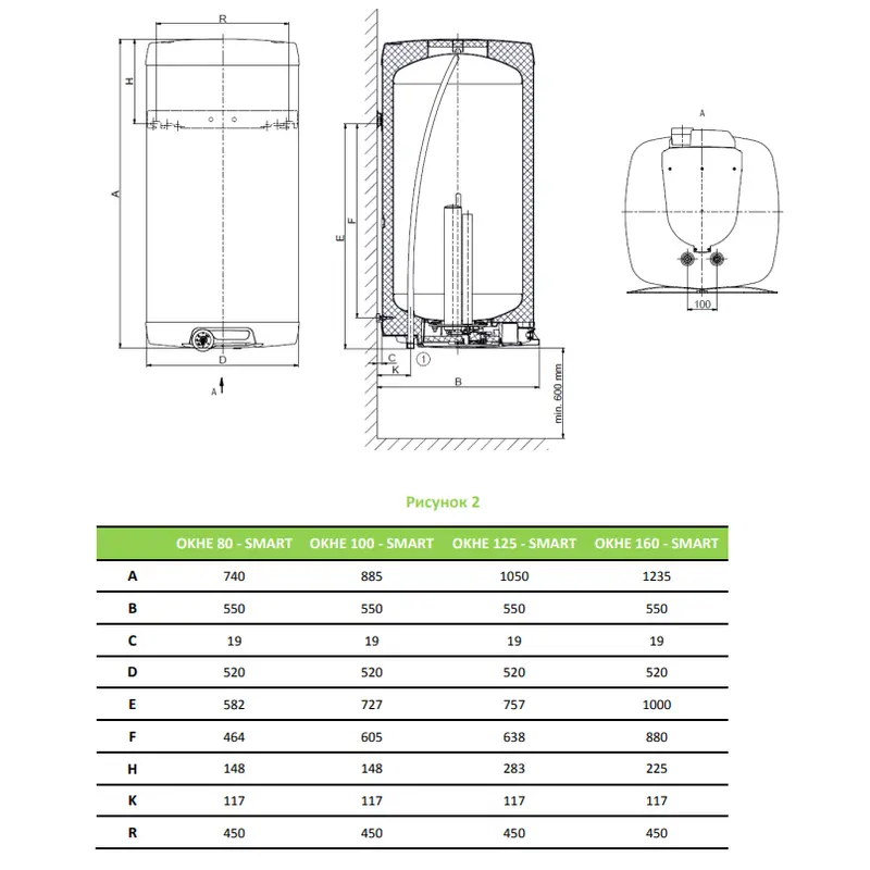 Бойлер електричний навісн., верт. OKHE160 Smart