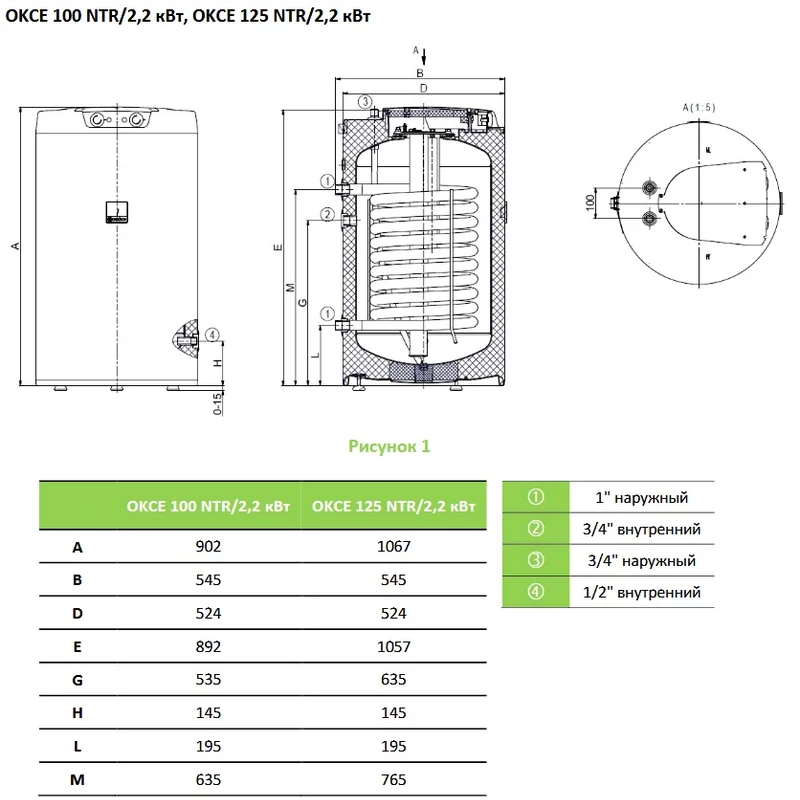 Бойлер косв., стац. OKCE 125 NTR/2,2kW вбуд. терм. model 2016 (1103701101)