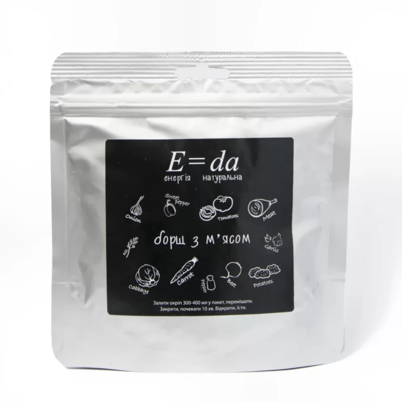Спосіб приготування: залити в пакет 400 мл гарячої води, перемішати, закрити zip-замок, почекати 5-10 хв.