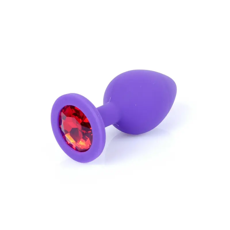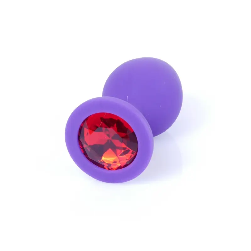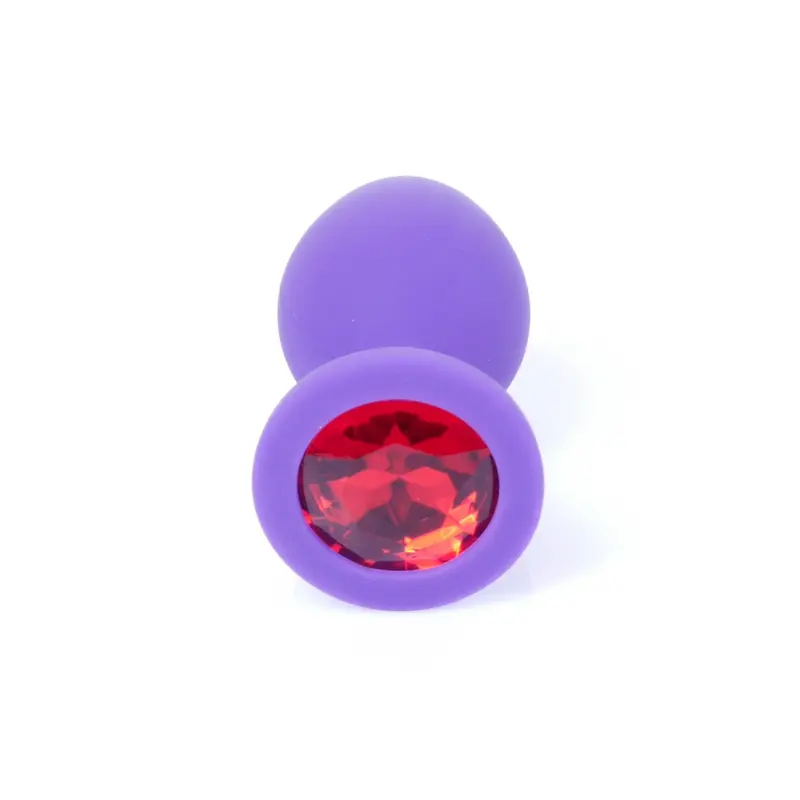 Boss Jewellery Purple Silicon Plug Medium Red Diamond - Анальная пробка с кристаллом, 8х3.5 см (фиолетовый с красным)