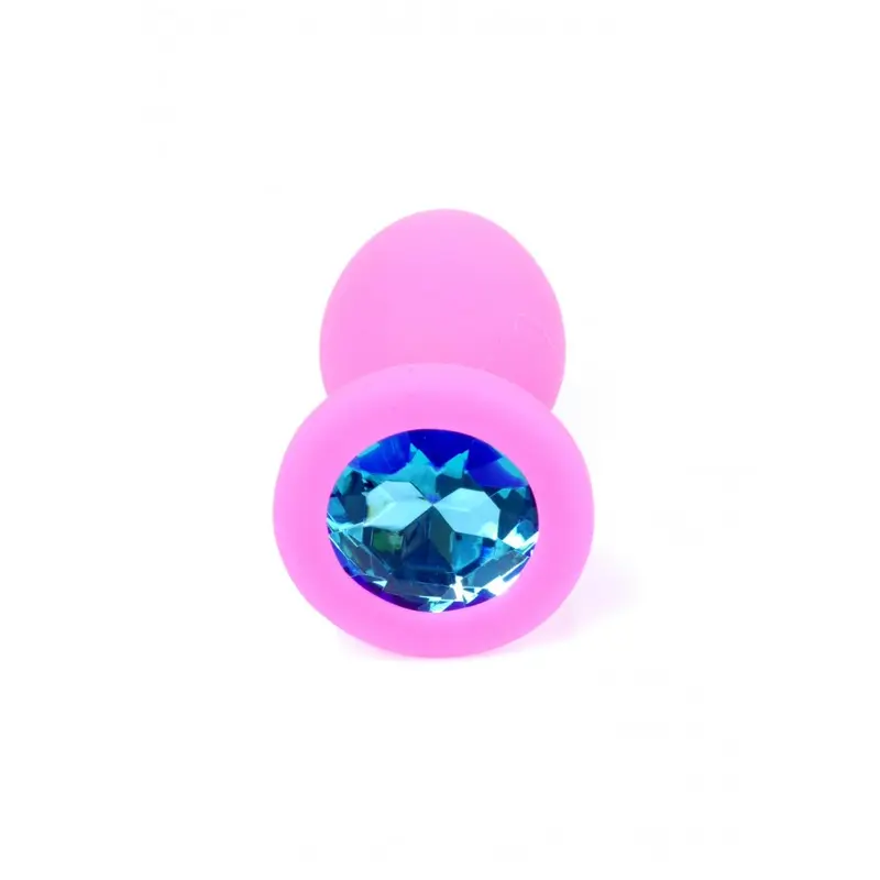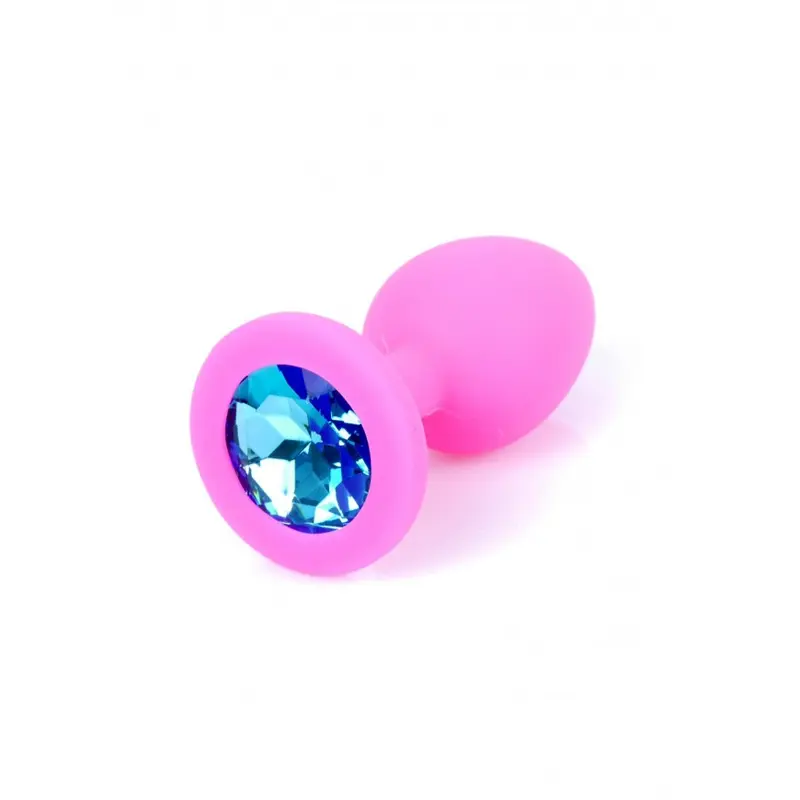 Boss Silikon Plug Jewellery Pink Small - Анальная пробка с кристаллом, 7х2.7 см (розовый с голубым)