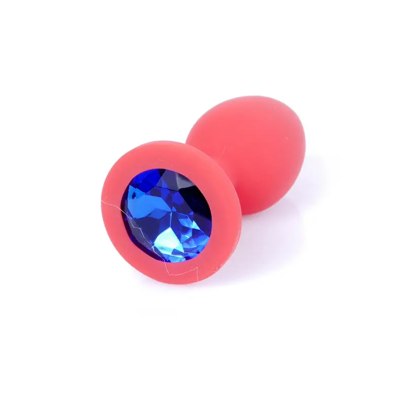 Анальная пробка с синим кристаллом Silikon Plug Jewellery Red Small