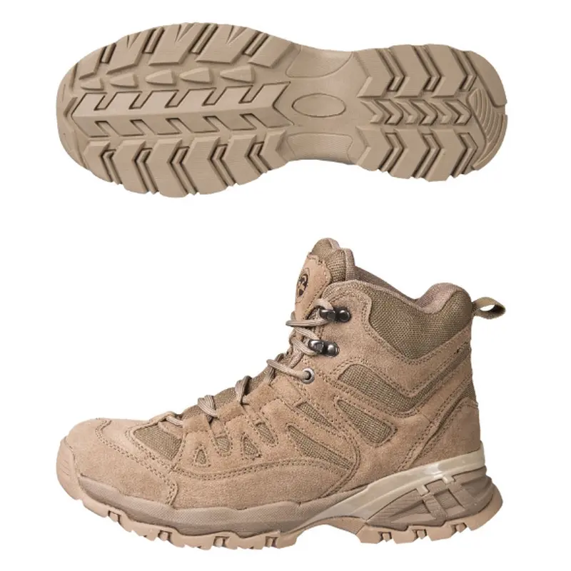 Ботинки "TROOPER SQUAD 5" от Mil-Tec характеризуются высоким европейским качеством и доступной ценой. Верх выполнен из натуральной мягкой замши со вставками из сетчатого полиэстера. Такая комбинация материалов позволяет максимально облегчить обувь, одновременно позволяя ноге «дышать».