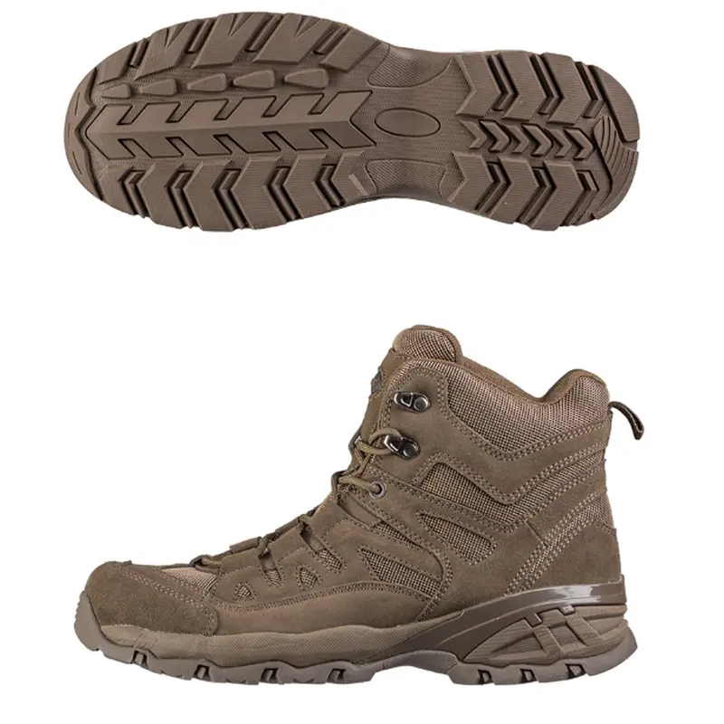 Ботинки MIL-TEC TROOOPER Brown, коричневые относятся к категории и могут быть использованы как военные, так и трекинговые. Для изготовления макушки этой модели используют вывернутую кожу в сочетании с синтетической тканью, которая обеспечивает легкость и свободу дыхания для кожи стоп.