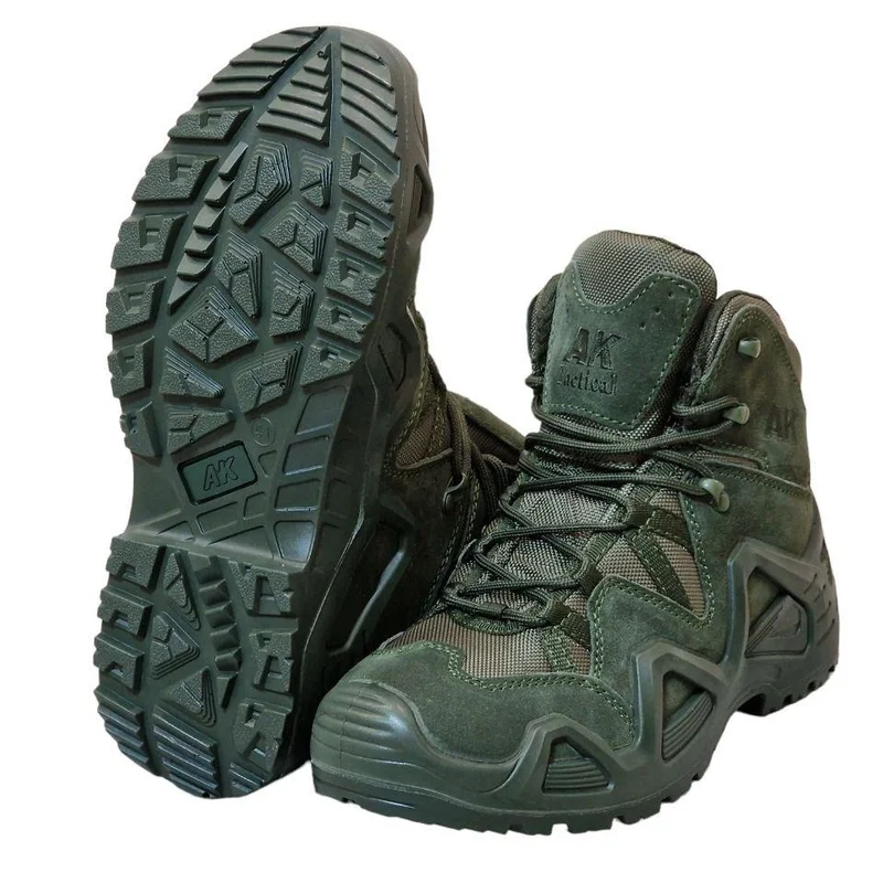 - Усиление подносок и задник из термопластического материала в ботинках обеспечит защиту от травм, что очень важно в условиях эксплуатации военной и туристической обуви.
