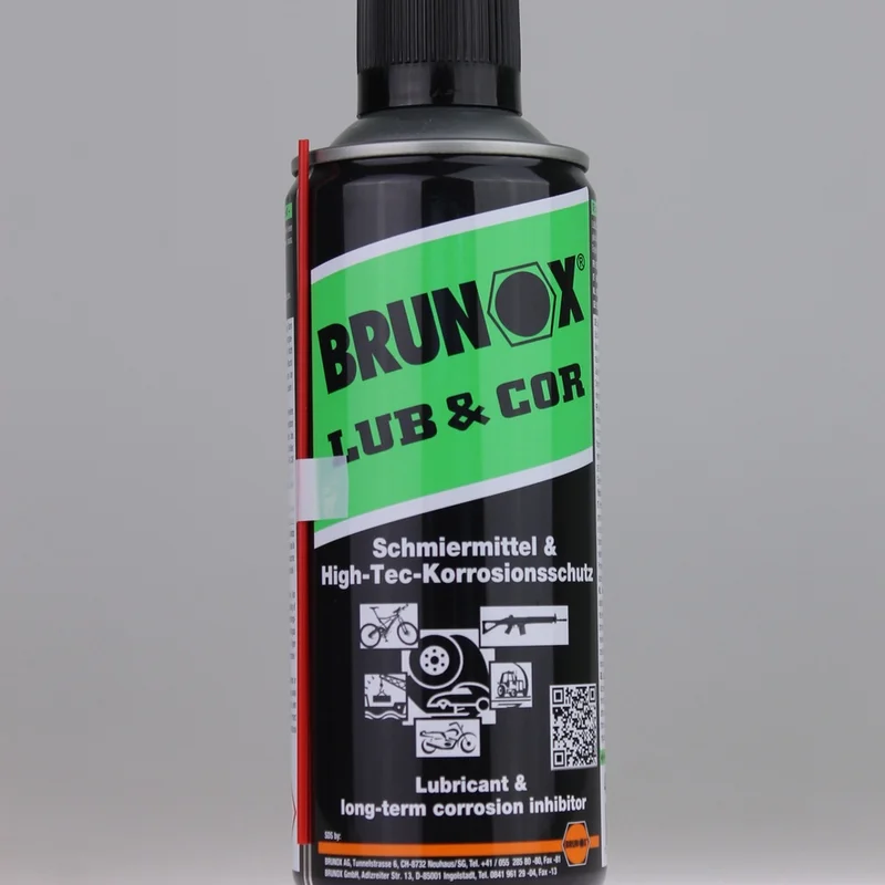 Brunox Lub&Cor – сучасний інноваційний засіб, який призначений для захисту колекційної, спортивної, пневматичної та вогнепальної зброї. Може використовуватися при його консервації на тривалий термін, тому що гарантує ефективний захист від корозії протягом 3 років. Олія має водо- та пиловідштовхувальні властивості.