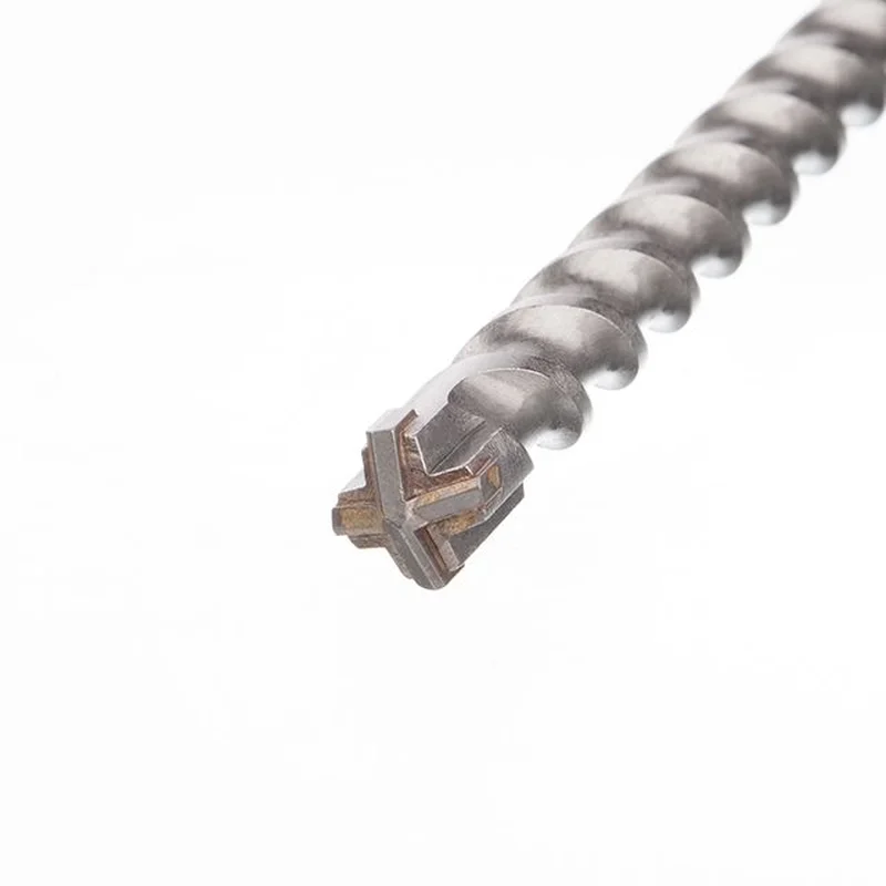 Твердосплавний наконечник з чотирма різальними гранями забезпечує легкий початок свердління та підвищену точність, що особливо важливо для центрування та запобігання ковзанню інструмента в початковій фазі свердління. Спіральна ріжуча частина ефективно виводить пил з робочого простору, мінімізуючи теплову дію, що важливо для довговічності бура та якості виконаних отворів.