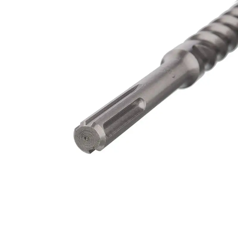 Твердосплавний наконечник з чотирма різальними гранями забезпечує легкий початок свердління та підвищену точність, що особливо важливо для центрування та запобігання ковзанню інструмента в початковій фазі свердління. Спіральна ріжуча частина ефективно виводить пил з робочого простору, мінімізуючи теплову дію, що важливо для довговічності бура та якості виконаних отворів.