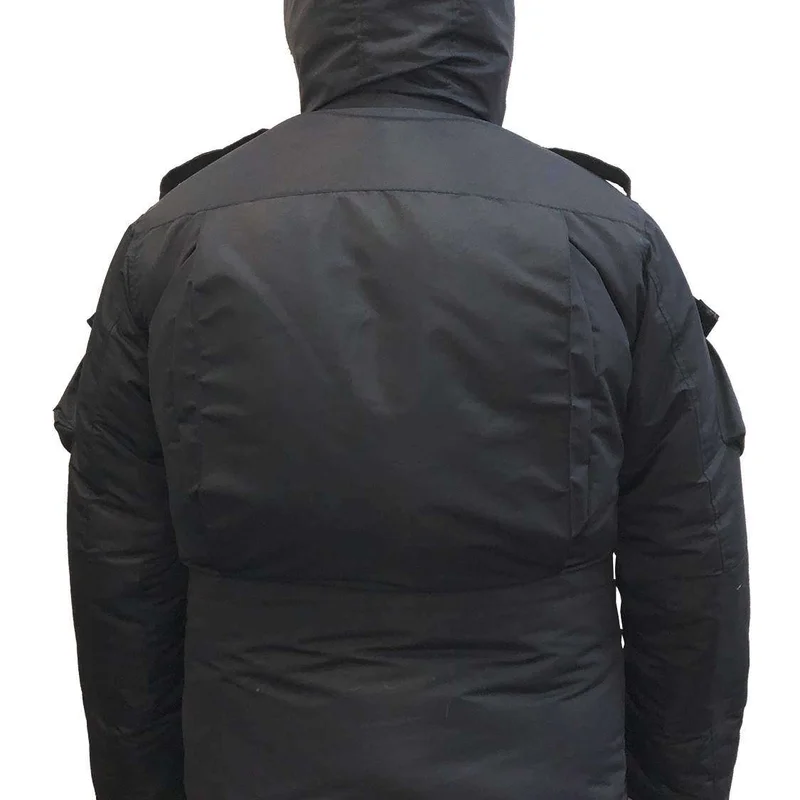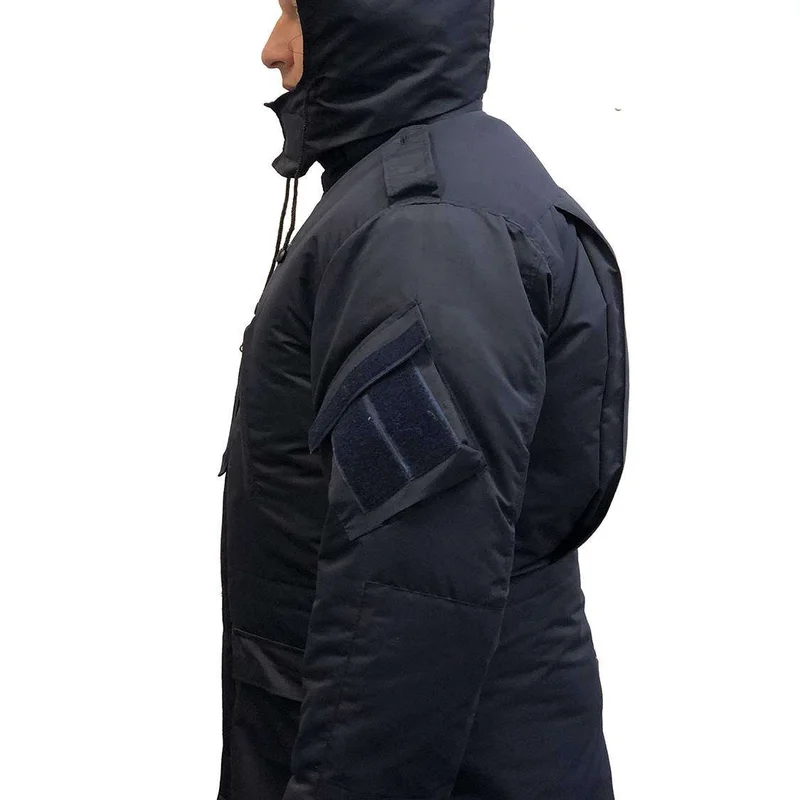 Бушлат темно-синий Pancer Ткань мембрана не промокает Утеплитель 300й синтепон + съемная жилетка на овчине Капюшон на молнии, усиленные локти Бушлат Pancer темно-синий для разных сезонов Бушлат мужской Pancer темно-синий – верхняя одежда со свободным кроем, предназначенная для защиты от холода, дождя и снега. Он очень нужен в холодное время года. Поскольку имеет подложку и утеплитель, которые сохраняют тело в тепле в холодную погоду. Это изделие изготовлено из качественных материалов, гарантирующих отличную защиту от ветра и дождя. Утеплитель из синтепона 300 не позволит замерзнуть даже в холодную зиму, обеспечивая отличную терморегуляцию тела. Характеристики бушлата Pancer темно-синего Такой бушлат Pancer покрыт мембраной, не пропускающей влагу. Это позволяет остаться сухим и в комфорте даже в дождливую погоду. А съемный жилет на овчине позволяет регулировать температуру тела в зависимости от условий. Регулируемый пояс позволяет настроить размер куртки для максимального удобства при движении. Еще одно преимущество – усиленные локти, позволяющие сохранить его в отличном состоянии в течение длительного времени даже при интенсивном использовании. Кроме этого, он имеет много карманов для хранения необходимых вещей, таких как кошельки, ключи, телефоны и другие. Благодаря таким свойствам он станет надежным помощником при любых условиях.