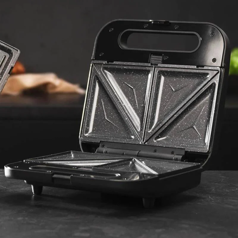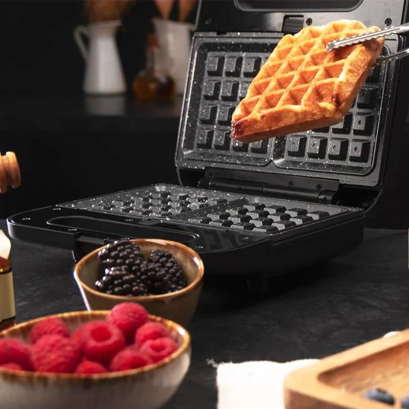 Мультимейкер CECOTEC RocknToast 1000 3in1 Сендвічі, вафлі та гриль все це в мультимейкері CECOTEC RocknToast 1000 3in1. За допомогою нагрівання великої потужності та конструкції з нержавіючої сталі, кожен сендвіч чи вафля буде ідеально обсмажений. Велику потужність нагріву Можливість миття в посудомийній машині Кам’яне покриття RockStone Екологічно безпечне покриття Стильний та ергономічний дизайн Приготуйте те, що Ви найбільше любите Завдяки 3 взаємозамінним пластинами CECOTEC Rock?nToast 1000 3in1 стане ідеальним помічником на вашій кухні, адаптуючись до всіх типів страв. На додачу до насолоди хрусткими та апетитними бутербродами, ви можете насолодитися смачними вафлями та ідеальними тостами на грилі. Покриття RockStone Кам’яне покриття RockStone, яке забезпечує максимальне антипригарне покриття та найкраще очищення. Таким чином, ви зможете підсмажити будь-яку їжу, від бутербродів, вафель, сиру, м’яса і тощо, без пригорання. Велика потужність нагріву Потужність 800 Вт дозволяє приготувати все від бутербродів і вафель до стейків, гамбургерів або скибочок хліба. Рівномірне обсмажування Обидві пластини дозволяють рівномірно обсмажувати, так що їжа готується рівномірно з обох боків, що дозволяє досягти найкращих результатів: хрусткої скоринки зовні та соковитості всередині. Легко помити Змінні пластини можна запросто зняти і почистити без найменших зусиль, тому що їх можна мити в посудомийній машині. Екологічно безпечно Кам’яне покриття RockStone виготовлене з екологічно безпечних матеріалів і відповідає харчовим нормам. Стильний та елегантний дизайн Конструкція CECOTEC RockToast 1000 3in1 зроблена максимально стильно та компактно і лише доповнюватиме Вашу кухню.