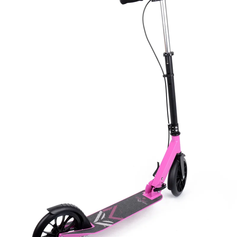 это складной самокат в ярком тоне, который подходит не только детям и подросткам, но и взрослым. Модель идеально подойдет для использования в городских условиях. Самокат максимально экономит место и легко складывается всего несколькими движениями. Вся конструкция складывается пополам по длине, а руль - по ширине. Руль регулируется по высоте и фиксируется быстроразъемным соединением. Материалом для самоката послужил легкий и прочный алюминий, благодаря чему он может выдерживать вес взрослого человека и при этом легок в транспортировке.