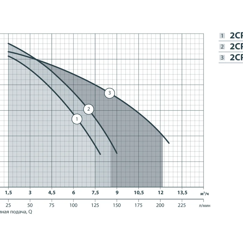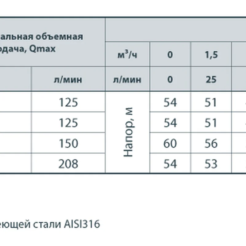 Максимальная объемная подача: 7,5 м³/ч (125 л/мин)